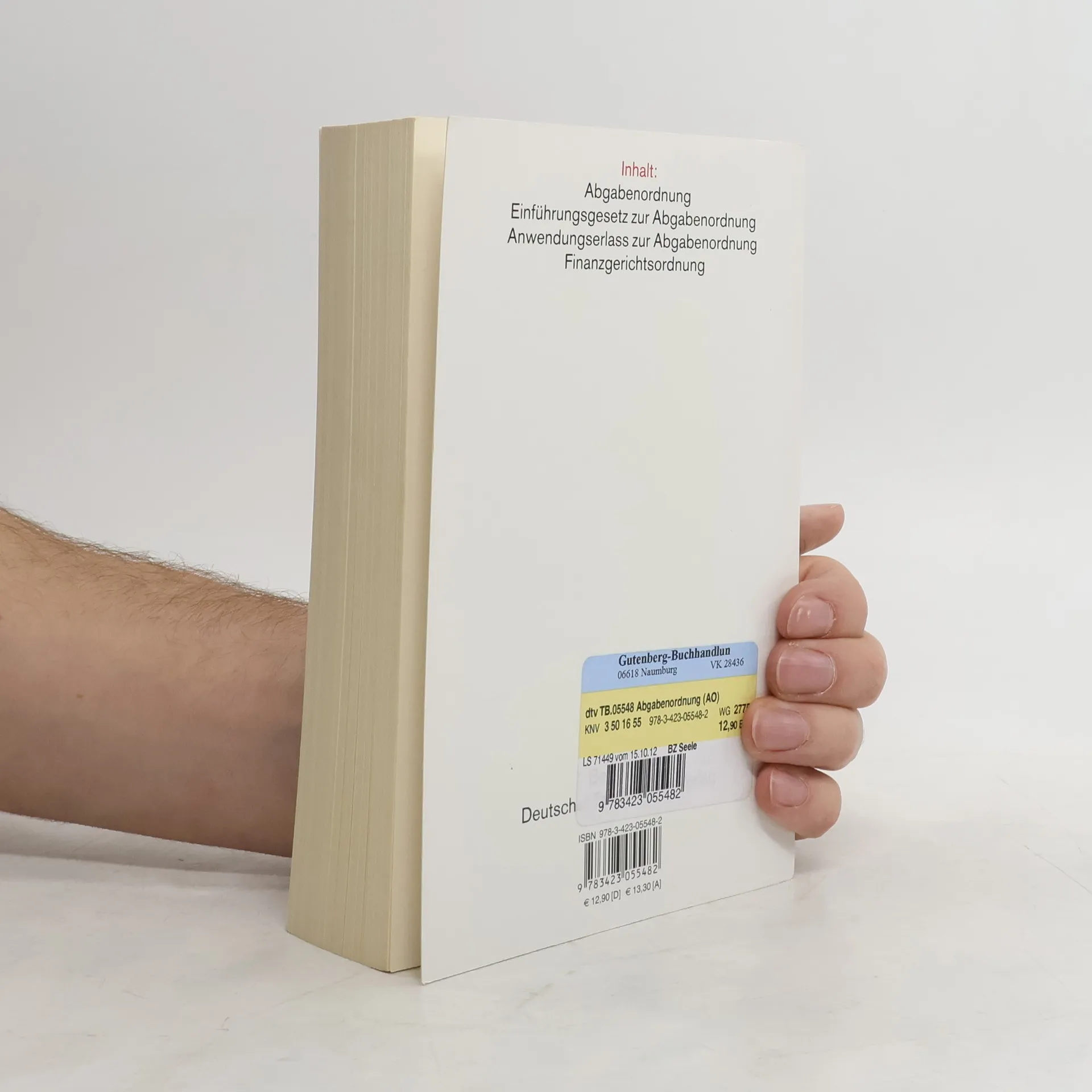 Inhalt Dieser Band enthält neben der Abgabenordnung auch das Einführungsgesetz zur Abgabenordnung, den Anwendungserlass zur Abgabenordnung sowie die Finanzgerichtsordnung. Neuauflage Die 47. Auflage bringt die Textausgabe auf den Stand 1. März 2023. Zielgruppe Für Steuerberatung, Wirtschaftsprüfung, Rechtsanwaltschaft, Richterschaft, Betriebe, Finanzverwaltung, Studierende, Referendarinnen und Referendare sowie Gemeinden.