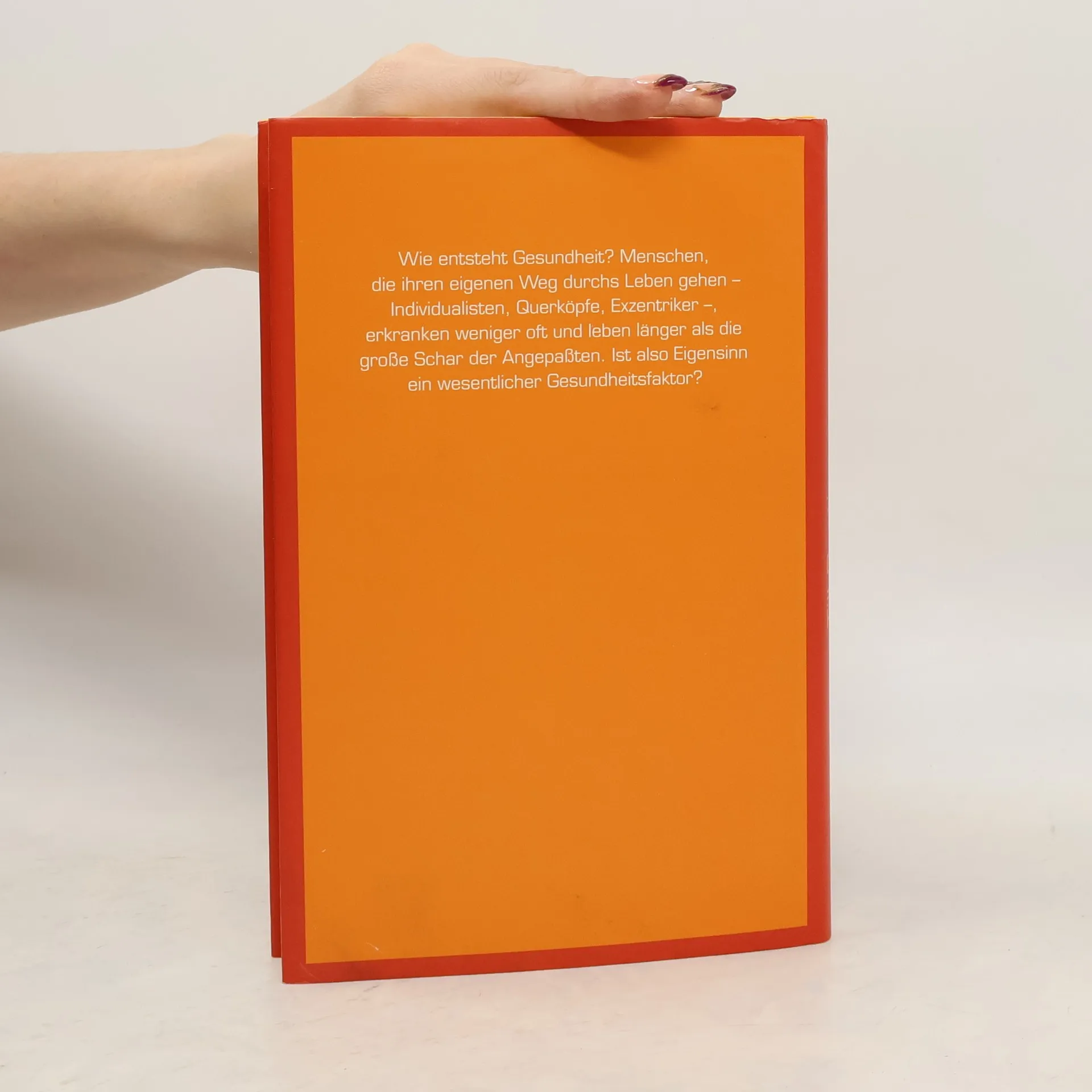 D a s Rezept gegen lästigen „Schnupfen“ und gedankenlose Anpassung Warum leben Frauen länger als Männer? Und warum erfreuen sich manche Menschen blühender Gesundheit, während andere immer mal wieder ein Zipperlein quält? Till Bastian hat eine erstaunliche Begründung: Individualisten, Querköpfe und Exzentriker erkranken nicht so häufig wie angepasste Menschen. Für den praktizierenden Arzt ist daher Eigensinn das Rezept gegen manchen drohenden Schnupfen. Positive Lebenseinstellung ist Willenssache. Vor allem aber ist sie das Ergebnis von körperlicher und geistiger Aktivität. Menschen, die sich von der Masse absetzen, die nicht zu allem „ja und amen“ sagen, sondern ihren eigenen Standpunkt vertreten und den Dingen ihren eigenen Sinn geben, leben länger.