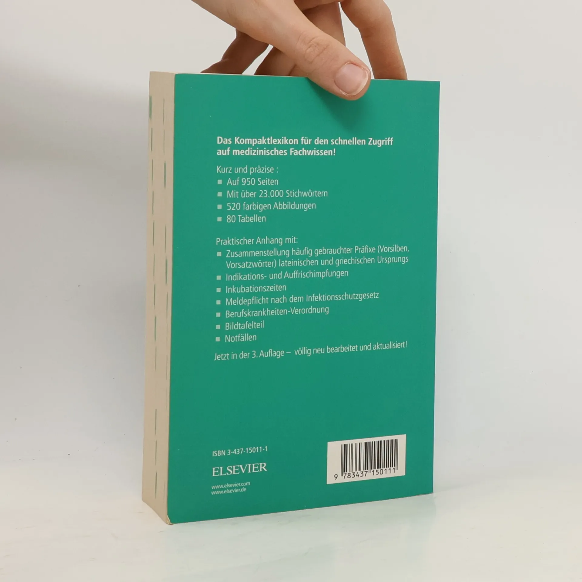 Ein kompaktes, handliches Medizinlexikon mit: Über 23.000 Stichwörtern 520 farbigen Abbildungen 80 Tabellen völlig neu bearbeitet und aktualisiert Praktischer Anhang mit: Zusammenstellung häufig gebrauchter Präfixe lateinischen und griechischen Ursprungs Indikations- und Auffrischimpfungen Inkubationszeiten Meldepflicht nach dem Infektionsschutzgesetz Berufskrankheiten-Verordnung Bildtafelteil Notfälle