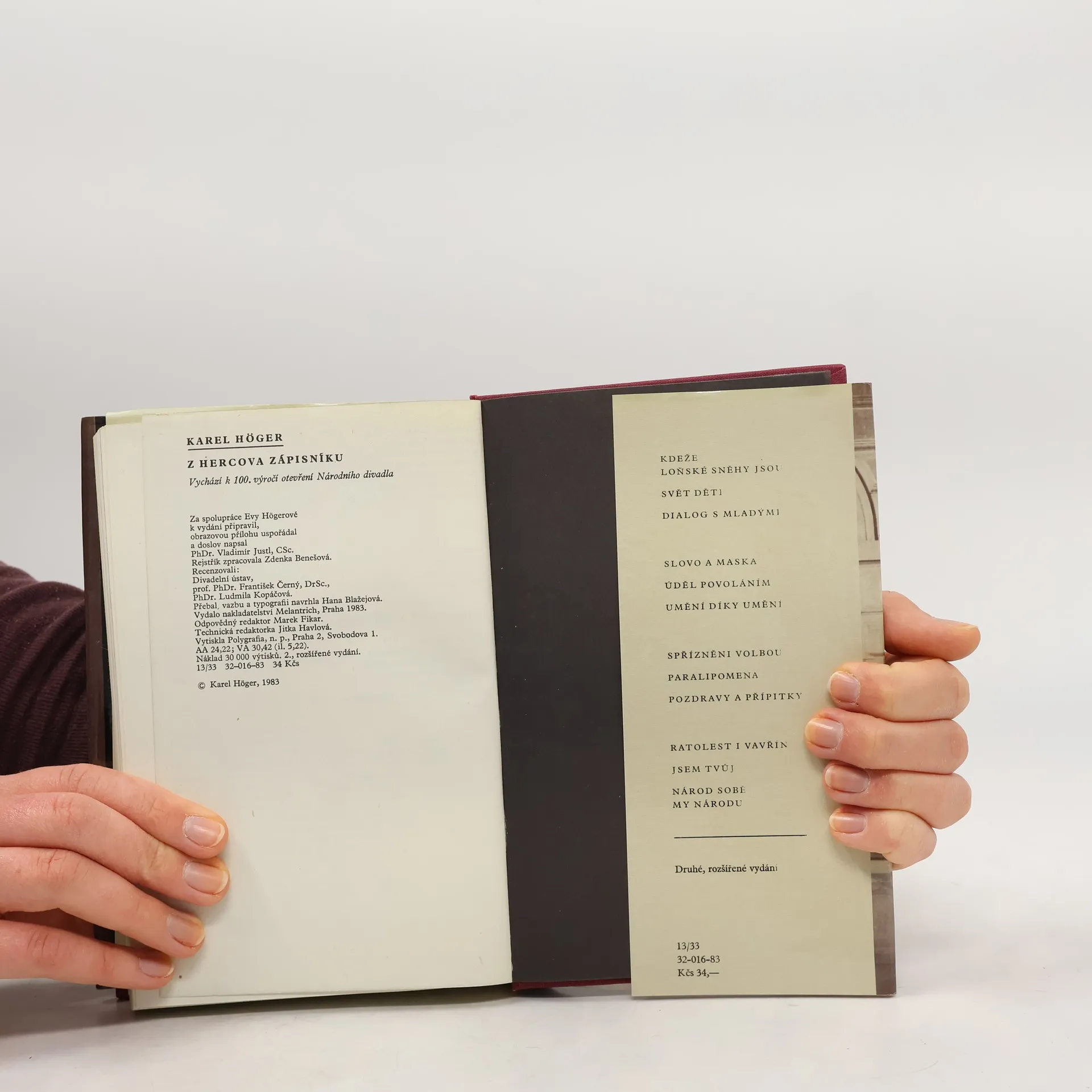 Kniha obsahuje vzpomínky, články, proslovy, část korespondence a různé příležitostné literární projevy herce Karla Högera.