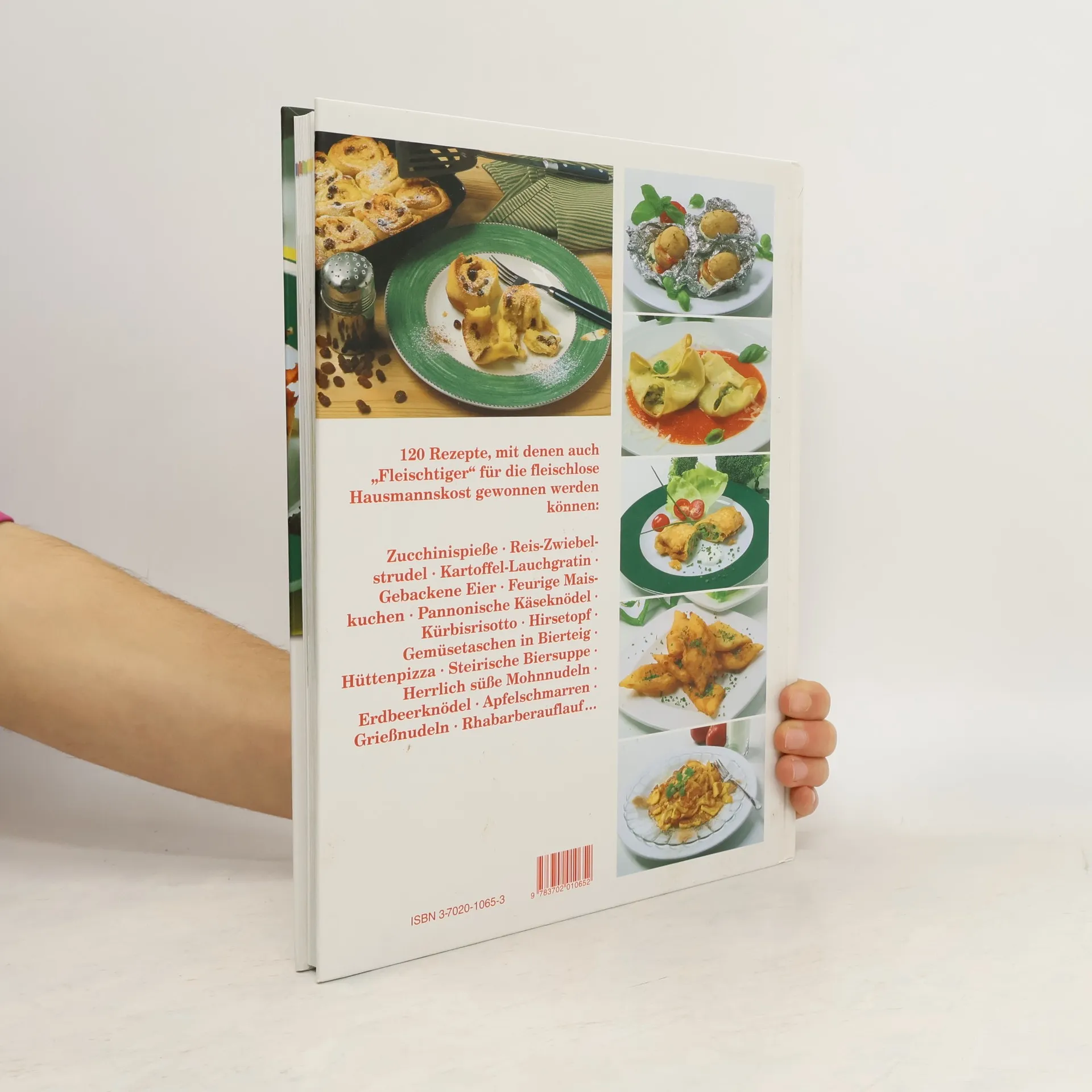 120 Rezepte, mit denen auch Fleischtiger für die fleischlose Hausmannskost gewonnen werden können: Pikante Gemüsespieße, Reisstrudel, Lauchgratin und gebackene Eier, feurige Maistaler, pannonische Käseknödel, Krautauflauf und Kürbisrisotto, Hirsetopf, Gemüsetaschen in Bierteig, Hüttenpizza, Zwiebelkuchen und Biersuppe; Herrlich süße Mohnnudeln, Erdbeerknödel und Apfelschmarren, Grießnudeln, Reisauflauf und Rhabarberstrudel ....