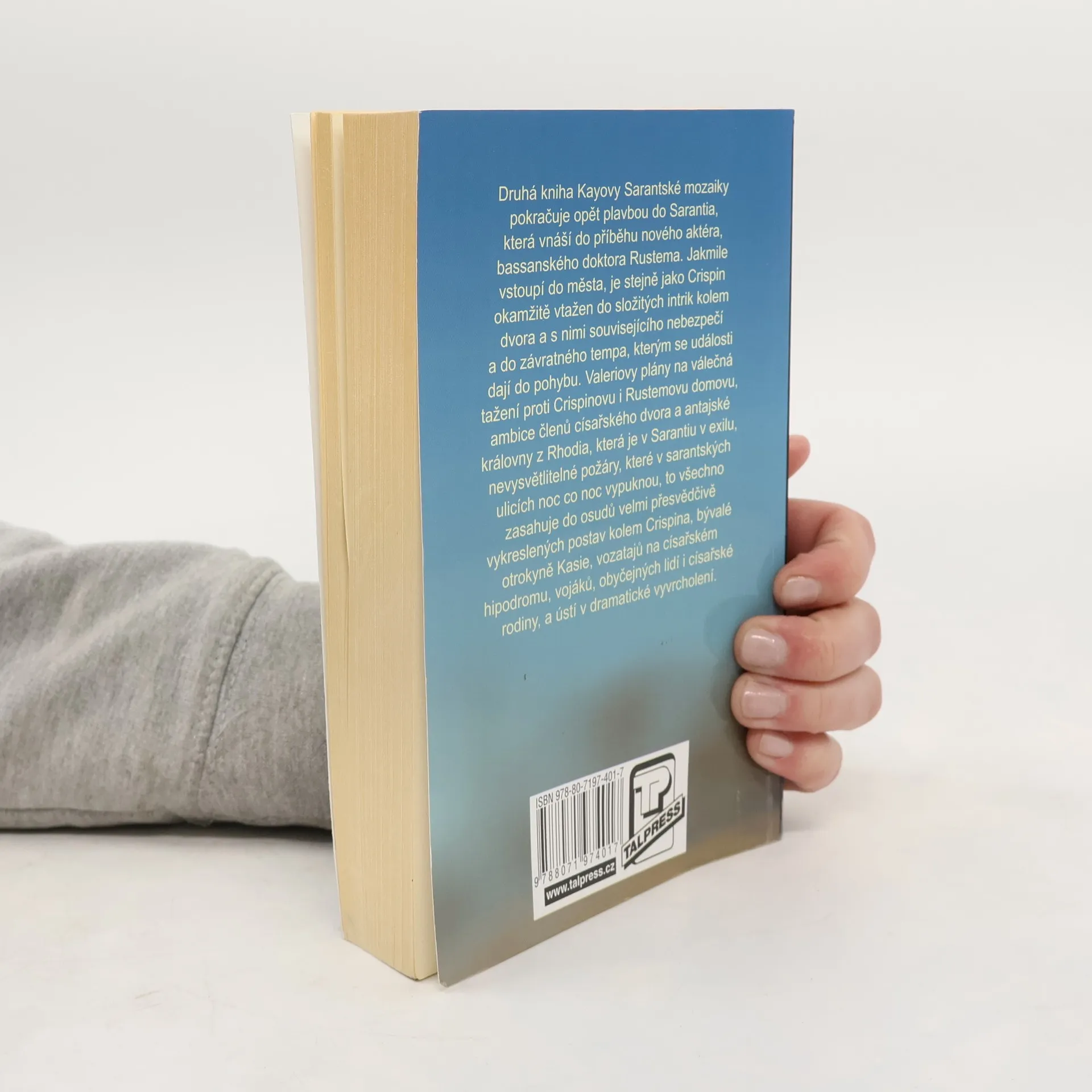Druhá kniha Kayovy Sarantské mozaiky pokračuje opět plavbou do Sarantia, která vnáší do příběhu nového aktéra, bassanského doktora Rustema. Jakmile vstoupí do města, je stejně jako Crispin okamžitě vtažen do složitých intrik kolem dvora a s nimi souvisejícího nebezpečí a do závratného tempa, kterým se události dají do pohybu. Valeriovy plány na válečná tažení proti Crispinovu i Rustemovu domovu, ambice členů císařského dvora a antajské královny z Rhodia, která je v Sarantiu v exilu, nevysvětlitelné požáry, které v sarantských ulicích noc co noc vypuknou, to všechno zasahuje do osudů velmi přesvědčivě vykreslených postav kolem Crispina, bývalé otrokyně Kasie, vozatajů na císařském hipodromu, vojáků, obyčejných lidí i císařské rodiny, a ústí v dramatické vyvrcholení.