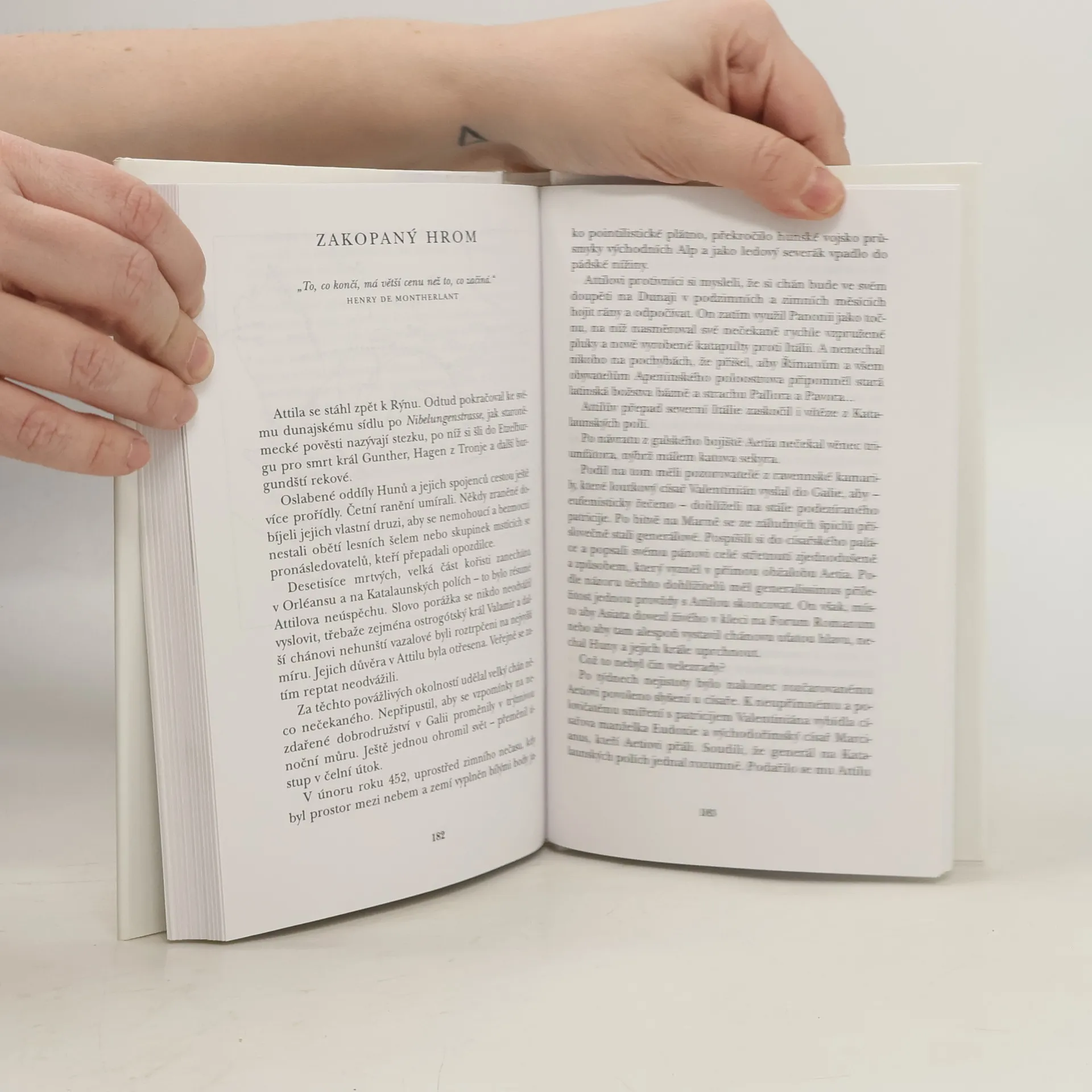 Kniha v širokém záběru přibližuje osud hunského krále Attily i dějinné události v Evropě v 5. století po Kr. V 5. století došlo k velkému pohybu barbarských národů. Jedním z nich byli i asijští Hunové. V roce 451 je jejich král Attila vedl k dobyvačné invazi do Galie(Francie), kde krutě zpustošili Trevír, Mety a Orléans. V rozhodném boji na Marně byl však Attila poražen římským vojevůdcem Aetiem. Attila pak nečekaně zaútočil ještě na severní Itálii, ale po zásahu papeže Lva I. upustil od dalšího plenění Itálie a stáhl se za Rýn. Zemřel přirozenou smrtí v roce 454. Do historie se však zapsal jako barbarský dobyvatel a "bič Boží".
