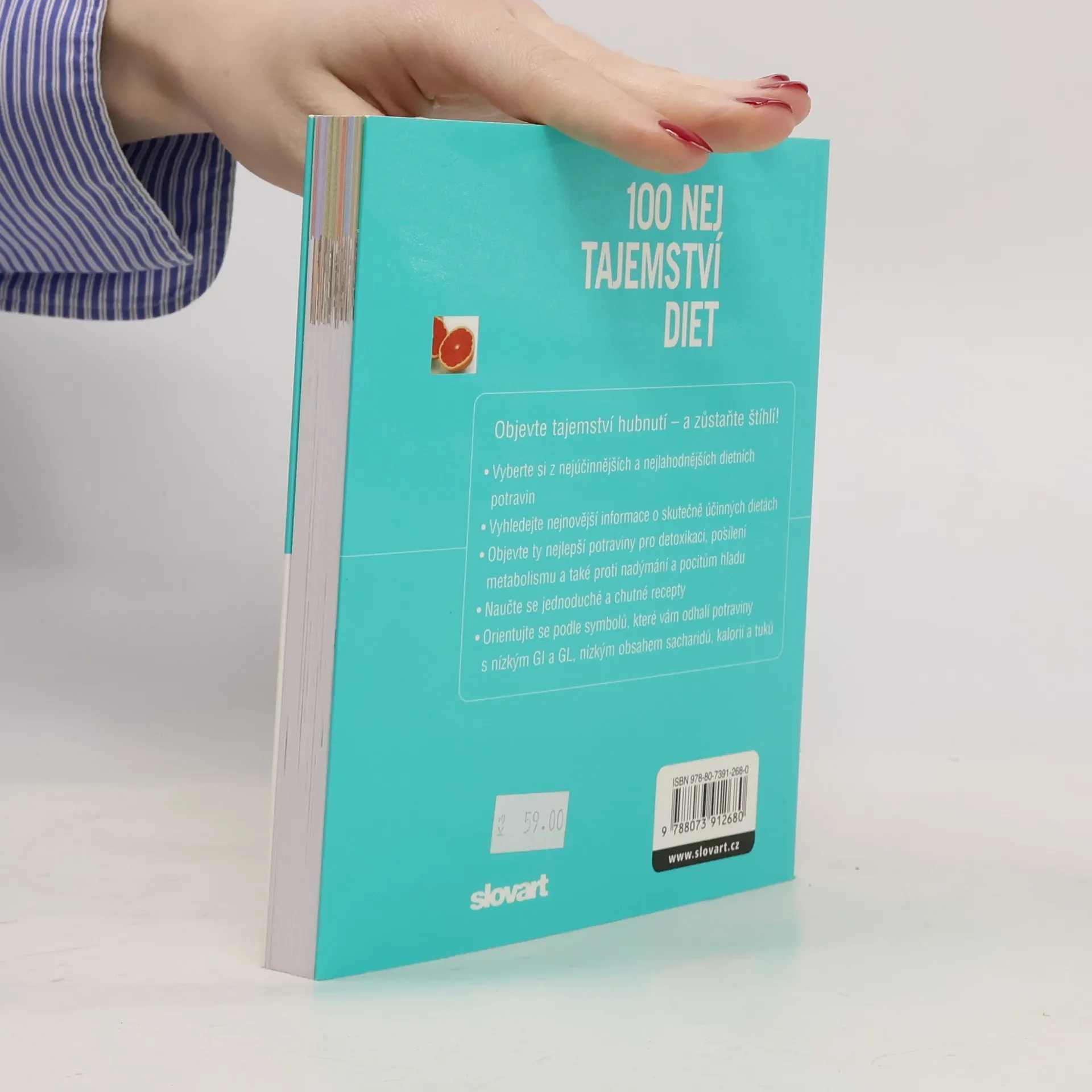 Někdy tak trochu závistivě sledujete štíhlé lidi a říkáte si, že asi vědí něco, co vy ne? Zde je kniha odkrývající i vám tajemství diet - plná nejnovějších informací o potravinách, které pomáhají zhubnout a co je důležité - štíhlost si také udržet. Obsahuje tipy na diety zaměřené například na nízký glykemický index a nízkou glykemickou zátěž, nízký obsah cukru nebo tuku a zahrnuje i detoxikační programy. Autorka Anna Selbyová vám představí 100 potravin vhodných na hubnutí - dozvíte se třeba že jedním z nejlepších čističů organismu je červená řepa, protože podporuje trávení a odstraňování toxinů. Informace o potravinách doplňují barevné fotografie, jednoduché symboly i skvělé recepty, díky nímž se můžete projíst do štíhlosti!