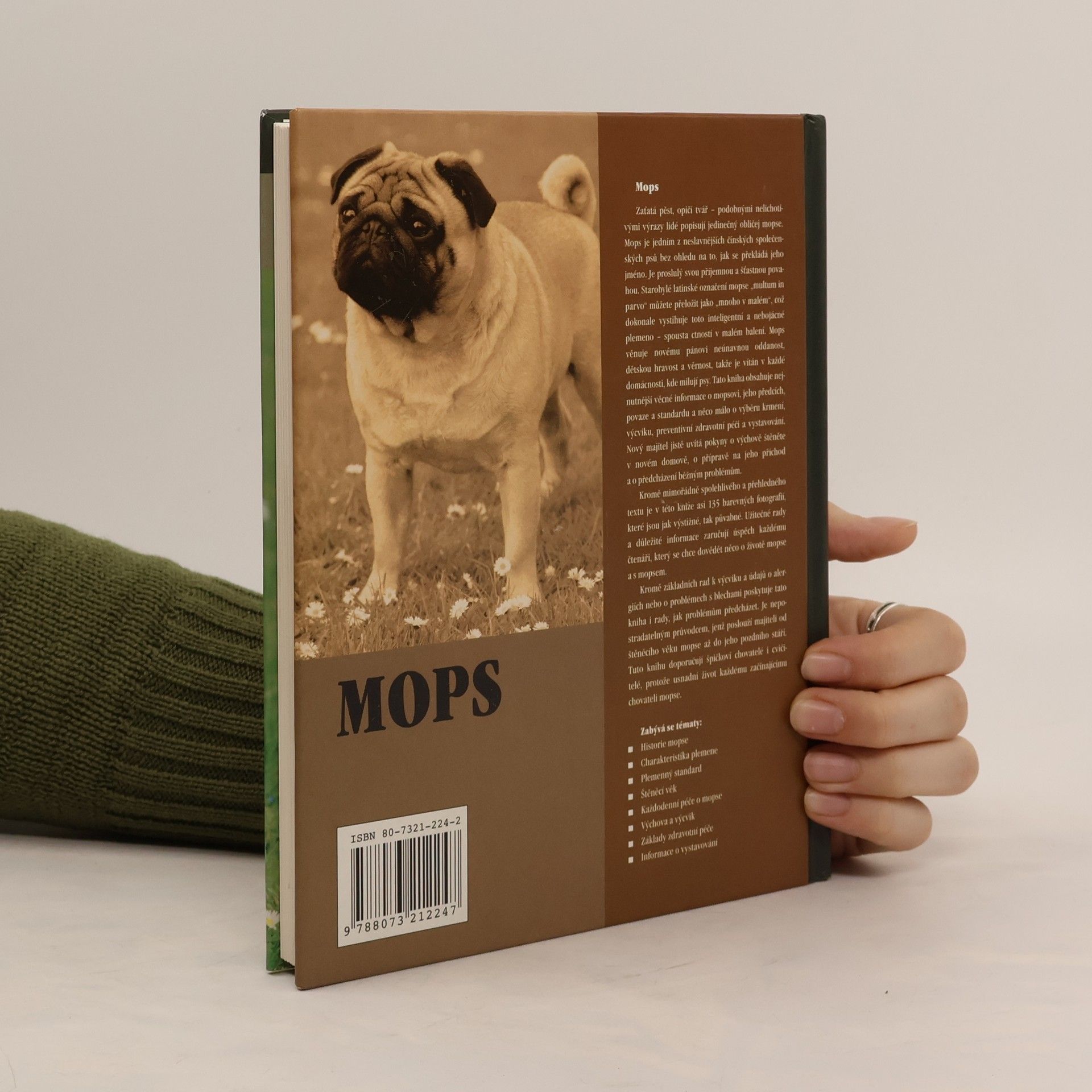 Zaťatá pěst, opičí tvář - podobnými nelichotivými výrazy lidé popisují jedinečný obličej mopse. Mops je jedním z nejslavnějších čínských společenských psů bez ohledu na to, jak se překládá jeho jméno. Je proslulý svou příjemnou a šťastnou povahou. Starobylé latinské označení mopse "multum in parvo" můžete přeložit jako "mnoho v malém", což dokonale vystihuje toto inteligentní a nebojácné plemeno - spousta ctností v malém balení. Mops věnuje svému pánovi neúnavnou oddanost, dětskou hravost a věrnost, takže je vítán v každé domácnosti, kde milují psy. Tato kniha obsahuje nejnutnější věcné informace o mopsovi, jeho předcích, povaze a standardu a něco málo o výběru krmení, výcviku, preventivní zdravotní péči a vystavování. Nový majitel jistě uvítá pokyny o výchově štěněte v novém domově, o přípravě na jeho příchod a o předcházení běžným problémům.