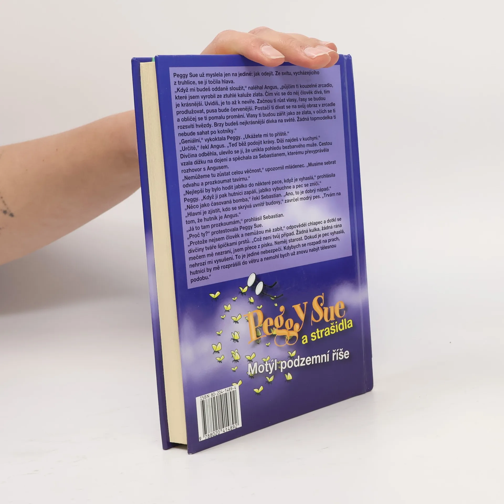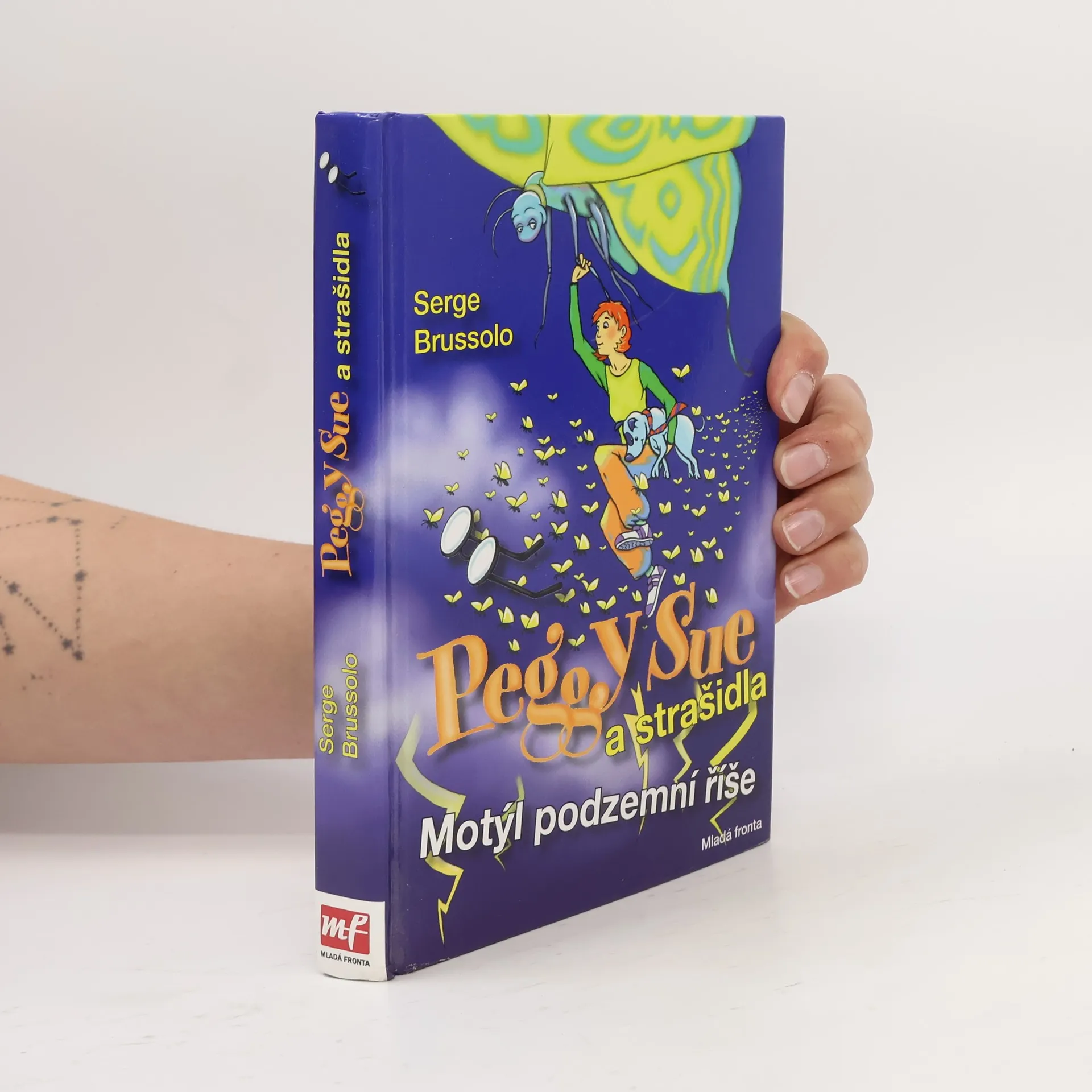 Druhá kniha o dobrodružstvích Peggy Sue – školačky a detektivky z kouzelného světa. V sérii knížek o Peggy Sue autor rozvíjí originálním způsobem dětskou fantazii. Hlavní hrdinka prochází četnými dobrodružstvími, při nichž se svým nerozlučným psím společníkem čelí mnohým nebezpečím. Serge Brussolo zapůsobil v osmdesátých letech, kdy vstoupil na francouzskou literární scénu, jako bomba. Od té doby patří k nejúspěšnějším a také nejplodnějším autorům země galského kohouta. V tomto svazku zachraňuje před poťouchlými bytostmi obřího motýla, který má vzácný dar – kdo se dostane do stínu jeho křídel, upadne do stavu blaženosti.