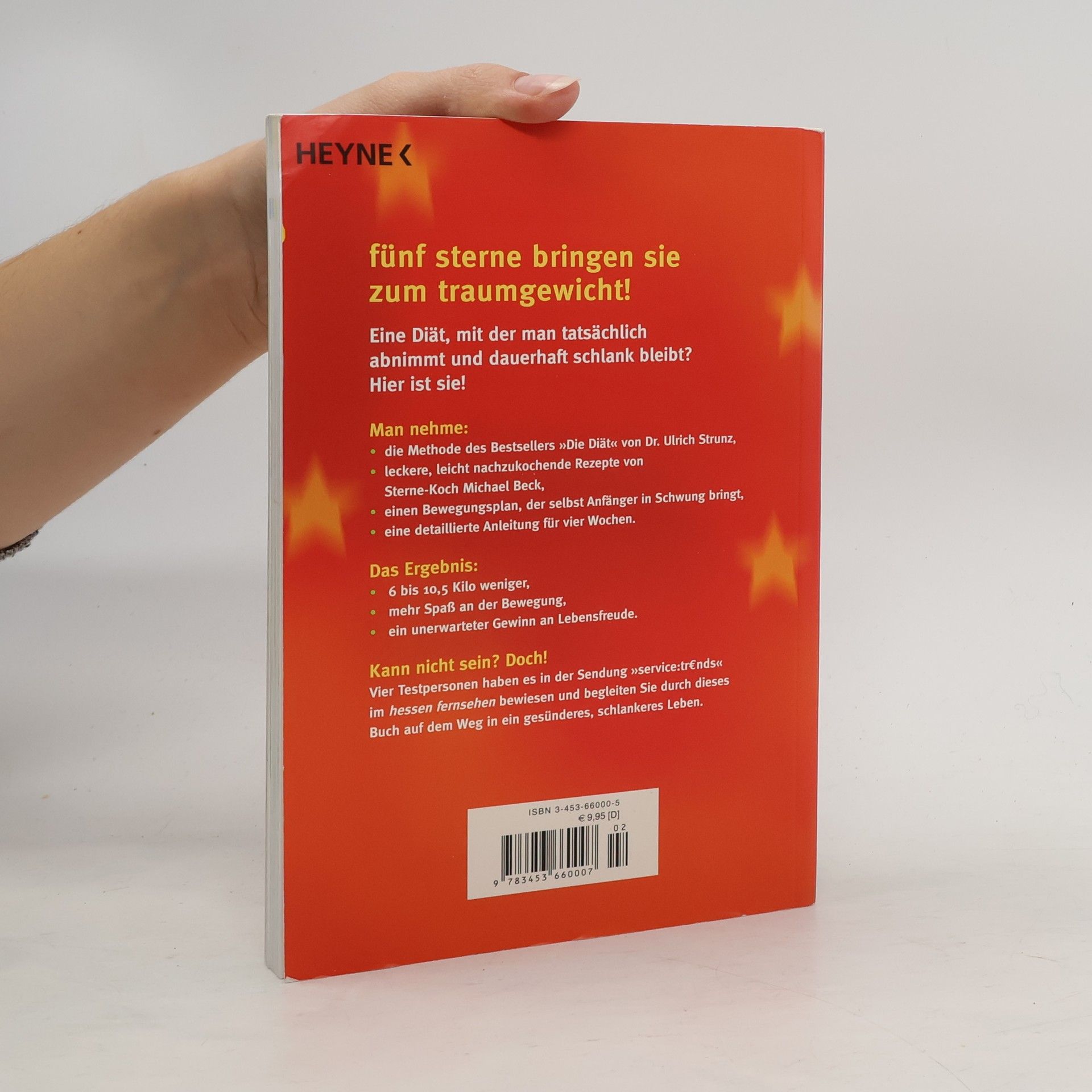 Essen mit Genuss, Abnehmen mit Erfolg Speisen wie ein Feinschmecker und zugleich in vier Wochen bis zu zwölf Kilo abnehmen! Auf der Basis seines erfolgreichen Bestsellers „Die Diät“ hat Dr. Ulrich Strunz zusammen mit Sterne-Koch Michael Beck ein umfassendes Programm entwickelt, das höchsten kulinarischen Ansprüchen genügt. Der Band enthält nicht nur leicht nachzukochende Rezepte für jeden Tag, sondern auch einen detaillierten Bewegungsplan, mit dem selbst Anfänger richtig in Schwung kommen. Und damit das Abnehmen auch Vielbeschäftigten mühelos gelingt, lassen sich viele Gerichte mithilfe von übersichtlichen Einkaufslisten im Voraus planen, in mehreren Portionen vorkochen und einfrieren.
