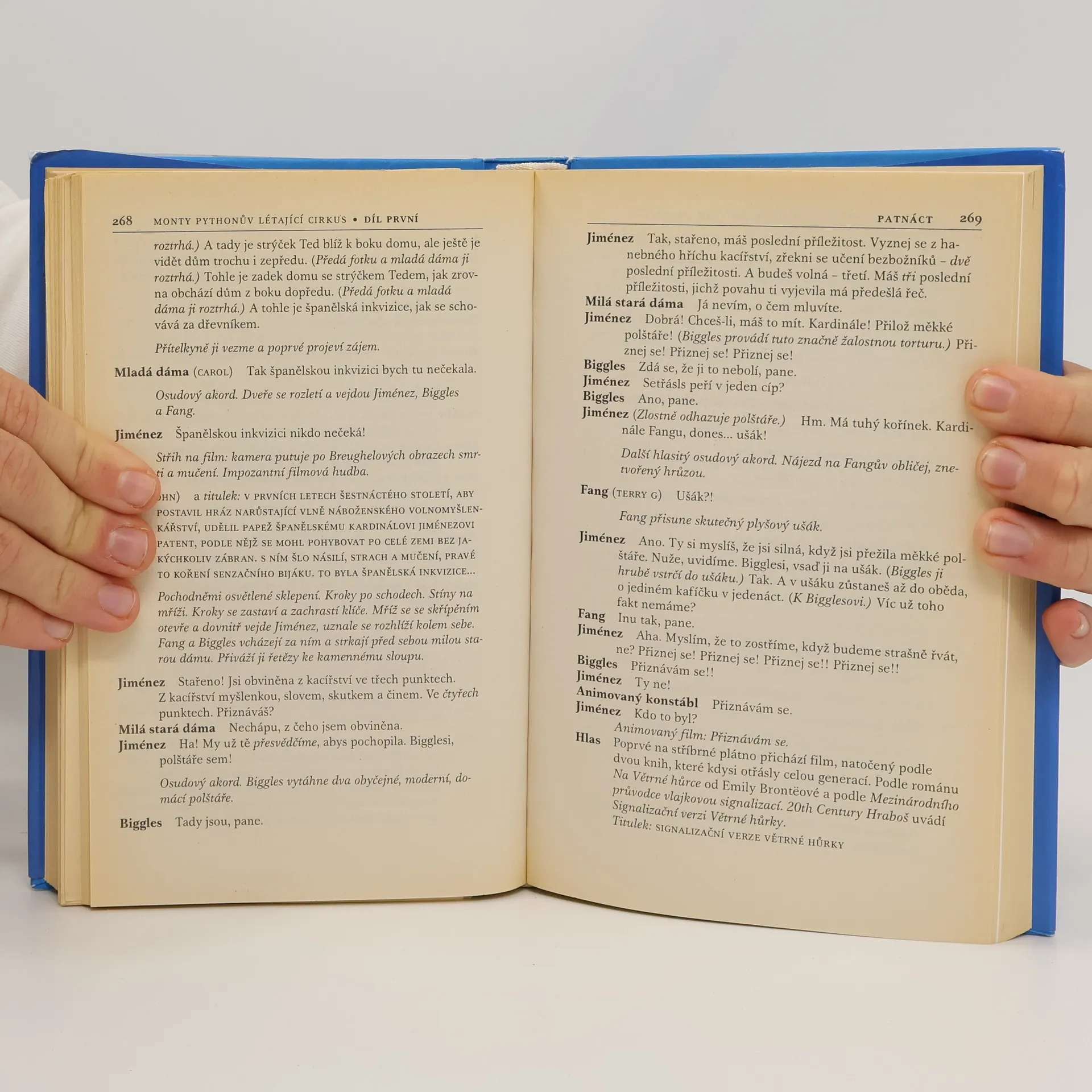 První svazek knižního vydání filmových scénářů televizních skečů slavné skupiny britských komiků. Nabízí skeče plné absurdního humoru, slovních hříček, dvojsmyslných narážek a satirických šlehů. Kniha přesvědčivě dokládá, že humor Monty Pythonů je skvělé vychutnat i v knižní podobě.