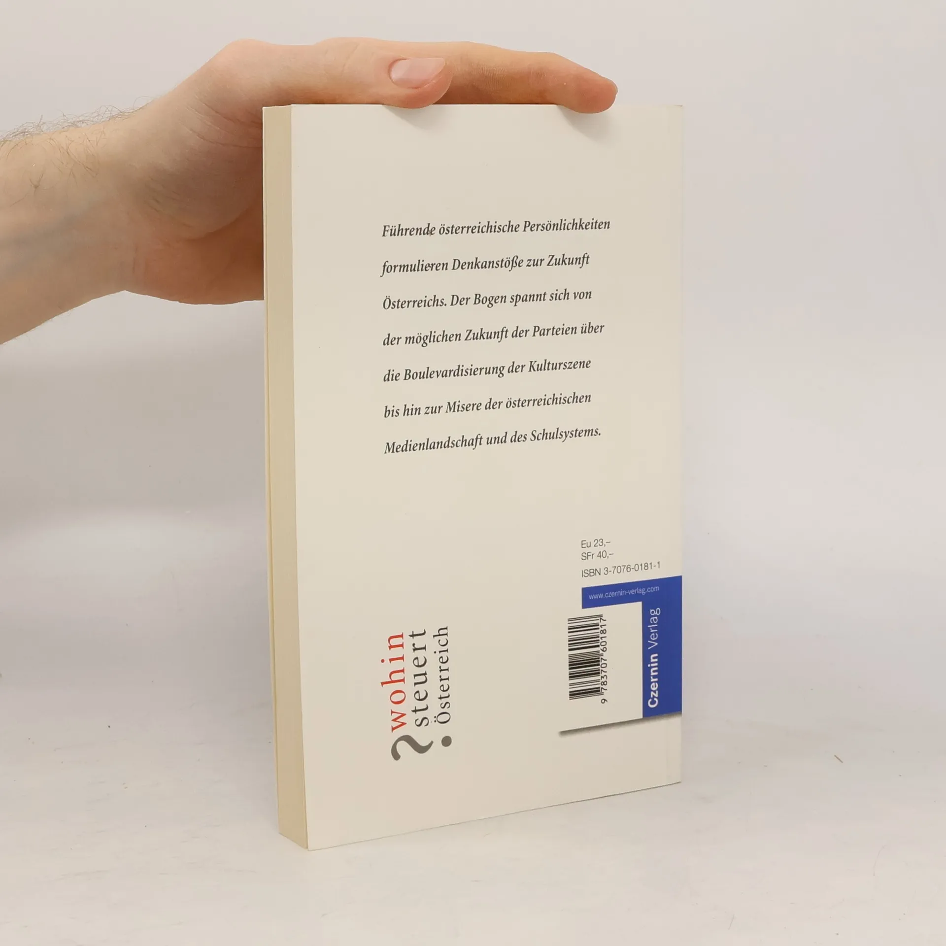 Unter dem Titel „Wohin steuert Österreich? Kritische Analysen und unorthodoxe Konzepte“ veranstaltet die Akademie Graz 2004 eine Vortragsreihe mit zukunftsorientierten Querdenkern. Angesichts der geografischen Zentralität Österreichs durch die EU-Erweiterung und der Notwendigkeit eines österreichischen Beitrags zum europäischen Konvent sind kritische Analysen und unorthodoxe Konzepte gefragt. Im Mittelpunkt steht die Frage nach dem Beitrag Österreichs zur europäischen Identität, die als bedeutende Herausforderung für die Zukunft betrachtet wird. Dies führt zu einer kritischen Analyse der österreichischen Parteien und deren Fähigkeit, Österreich zu einem modernen Staat zu entwickeln und eine beispielgebende Verfassung für Europa zu schaffen. Auch die Rolle der heimischen Medienlandschaft, die dieses Vorhaben mit Kommentaren und kritischen Impulsen begleiten sollte, wird betrachtet. Zudem wird das österreichische Forschungs- und Bildungssystem in den Fokus genommen. Es wird erörtert, wie ein unverwechselbares Profil gewonnen werden kann, das humane Wertvorstellungen im neoliberalen Kontext betont. Herausgeber Emil Breisach, geboren 1923, war Landesintendant des ORF-Landesstudios Steiermark, Lehrbeauftragter an der Universität Graz und Gründer der AKADEMIE GRAZ. Zu den Autoren zählen zahlreiche namhafte Persönlichkeiten aus verschiedenen Bereichen.