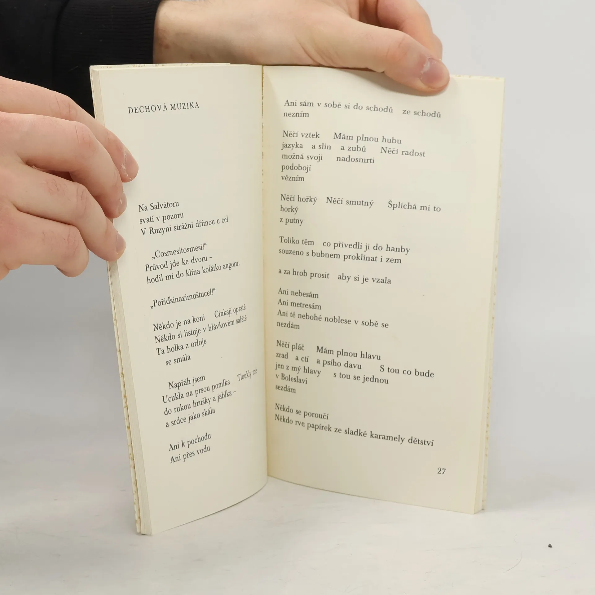 Tematicky básně vycházejí z rozporuplnosti času a z převládajícího pocitu lítosti nad zaměřenými léty života. Pocit osobní nesvobody v totalitním režimu se promítá do obrazu osamělého ostrova, kde se člověk ocitá v ponižující situaci. Některé básně jsou věnovány zcela konkrétním osobnostem ( Chramostová, Skácel..). 1. vydání.