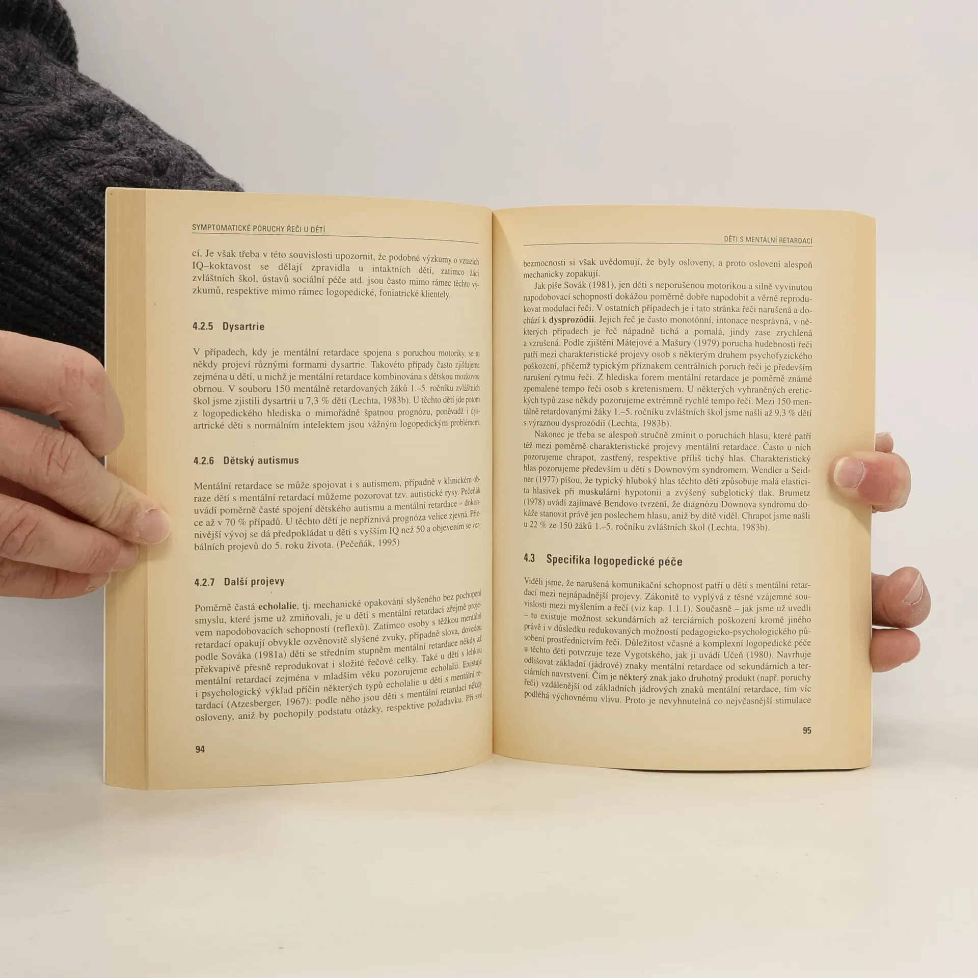 Kniha poskytuje informace o základních typech poruch řeči u dětí a jejich logopedické léčbě. Komunikační schopnosti jsou u většiny tělesně i duševně postižených dětí typickým způsobem narušeny. Jednotlivé skupiny postižených potřebují při rozvíjení řeči odlišný přístup, při práci s nimi je třeba brát v úvahu specifika jejich řečového vývoje a pochopit jejich komunikační omezení, dané charakterem a stupněm postižení. Kniha není určena pouze pro logopedy, ale pro všechny speciální pedagogy a psychology, kteří pracují s mentálně, sluchově, zrakově či tělesně postiženými. Přehledným způsobem ukazuje, jaké druhy poruch řeči se u jednotlivých skupin postižení vyskytují a jak je napravovat.