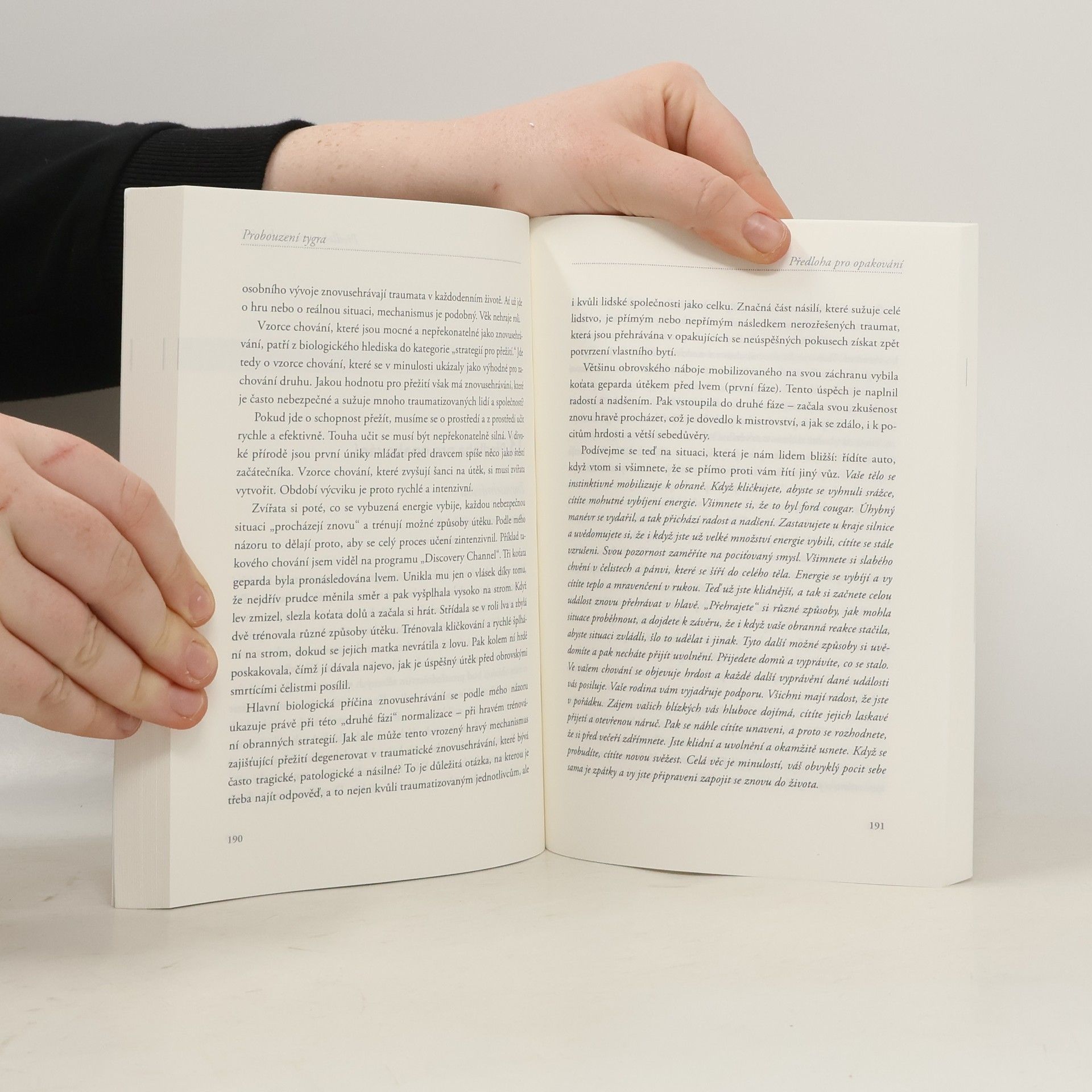 Kniha Probouzení tygra srozumitelně popisuje symptomy traumatu a kroky, které je třeba podniknout k jejich léčení. Trauma často vzniká následkem zdánlivě běžných zážitků a zkušeností. Kniha je průvodcem, který nás zavede do světa téměř nepostřehnutelných, ale velmi mocných impulsů, jež řídí naše reakce na zdrcující životní události. Najdeme zde řadu cvičení, která nám pomohou zaměřit se na tělesné vjemy. Budeme-li těmto vjemům věnovat více pozornosti, můžeme trauma léčit.
