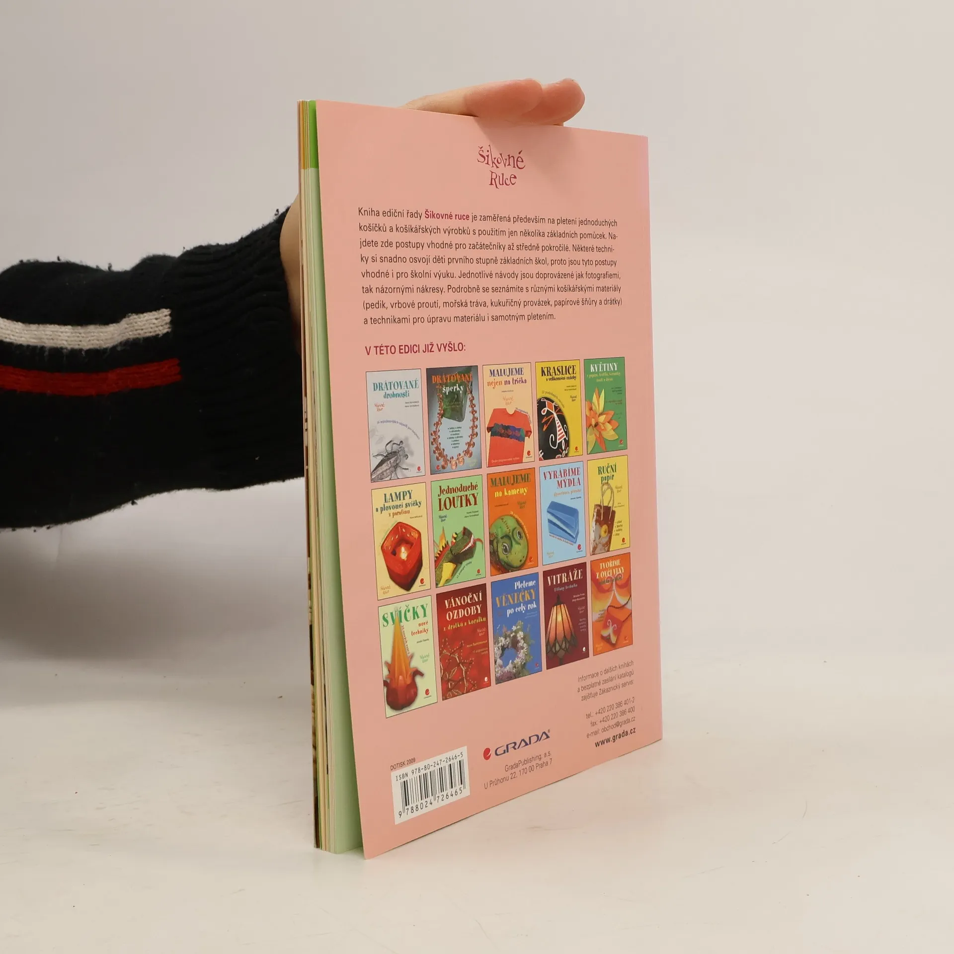 Kniha ediční řady Šikovné ruce je zaměřená především na pletení jednoduchých košíčků a košíkářských výrobků s použitím jen několika základních pomůcek. Najdete zde postupy vhodné pro začátečníky až středně pokročilé. Některé techniky si snadno osvojí děti prvního stupně základních škol, proto jsou tyto postupy vhodné i pro školní výuku. Jednotlivé návody jsou doprovázené jak fotografiemi, tak názornými nákresy. Podrobně se seznámíte s různými košíkářskými materiály (pedik, vrbové proutí, mořská tráva, kukuřičný provázek, papírové šňůry a drátky), způsoby úpravy materiálu jako je barvení i základními technikami samotného pletení.