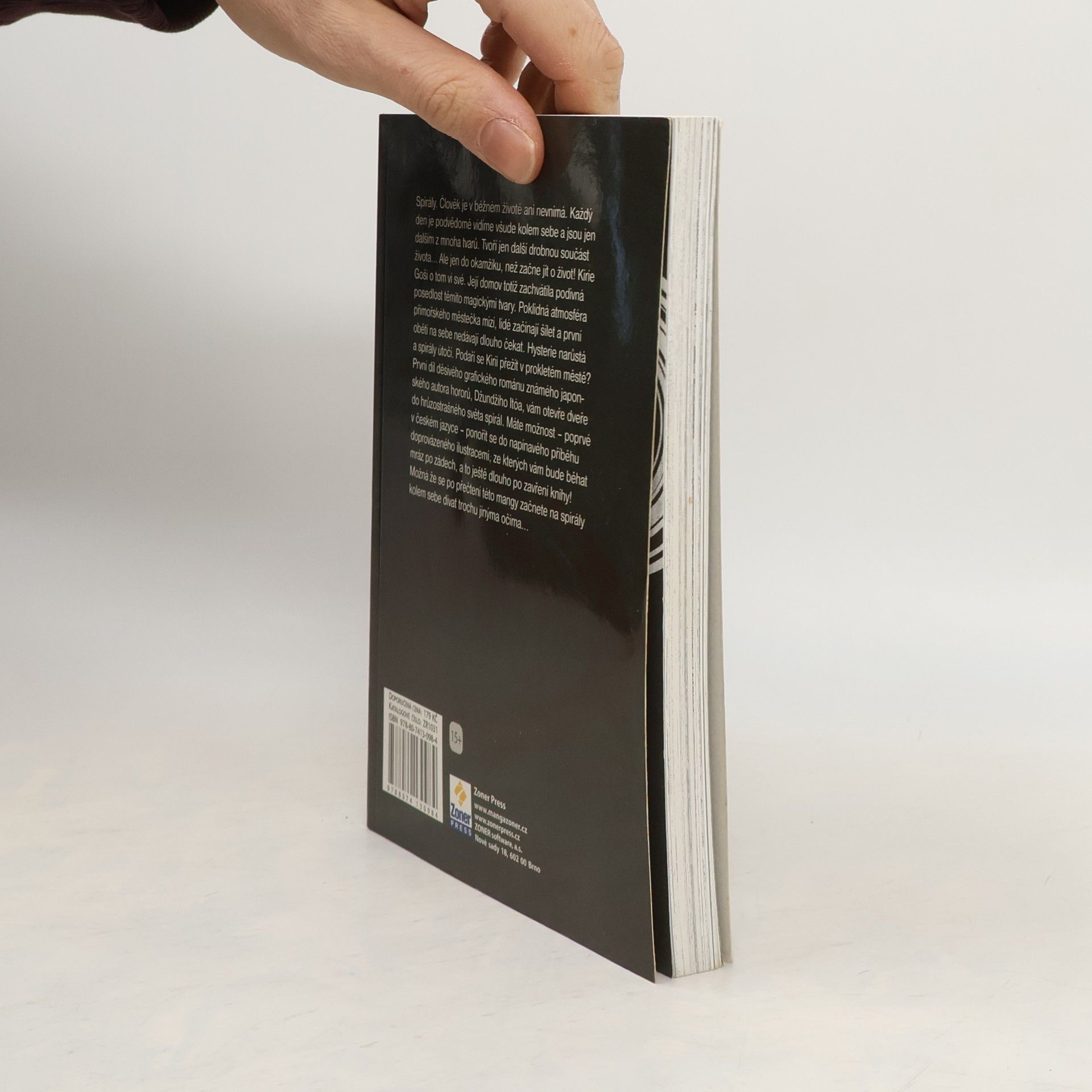 Spirály. Člověk je v běžném životě ani nevnímá. Každý den je podvědomě vidíme všude kolem sebe a jsou jen dalším z mnoha tvarů. Tvoří jen další drobnou součást života... Ale jen do okamžiku, než začne jít o život! Kirie Goši o tom ví své. Její domov totiž zachvátila podivná posedlost těmito magickými tvary. Poklidná atmosféra přímořského městečka mizí, lidé začínají šílet a první oběti na sebe nedávají dlouho čekat. Hysterie narůstá a spirály útočí. Podaří se Kirii přežít v prokletém městě? První díl děsivého grafického románu známého japonského autora hororů Džundžiho Itóa vám otevře dveře do hrůzostrašného světa spirál. Máte možnost - poprvé v českém jazyce - ponořit se do napínavého příběhu doprovázeného ilustracemi, ze kterých vám bude běhat mráz po zádech, a to ještě dlouho po zavření knihy! Možná, že se po přečtení této mangy začnete na spirály kolem sebe dívat trochu jinýma očima…