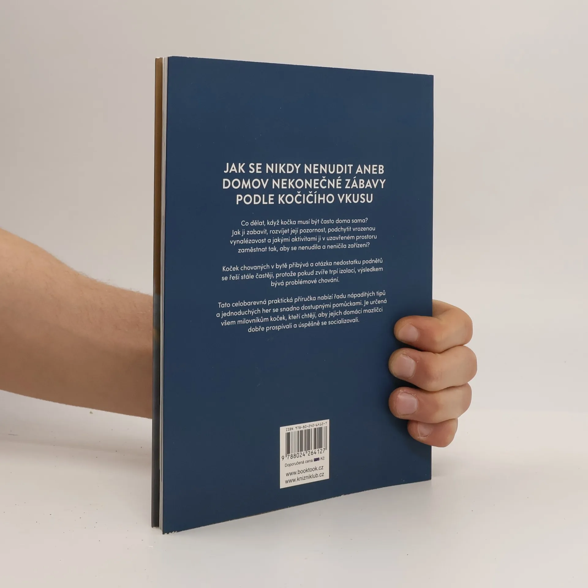 Jak udělat domácí kočku šťastnou. Co dělat, když kočka musí být často doma sama? Jak ji zabavit, rozvíjet její pozornost, podchytit vrozenou vynalézavost a jakými aktivitami ji v uzavřeném prostoru zaměstnat tak, aby se nenudila a neničila zařízení? Koček chovaných v bytě přibývá a otázka nedostatku podnětů se řeší stále častěji, protože pokud kočka trpí izolací, výsledkem bývá problémové chování. Tato celobarevná praktická příručka nabízí celou řadu nápaditých tipů a jednoduchých her se snadno dostupnými pomůckami. Je určená všem milovníkům koček, kteří chtějí, aby jejich domácí mazlíčci dobře prospívali a úspěšně se socializovali.