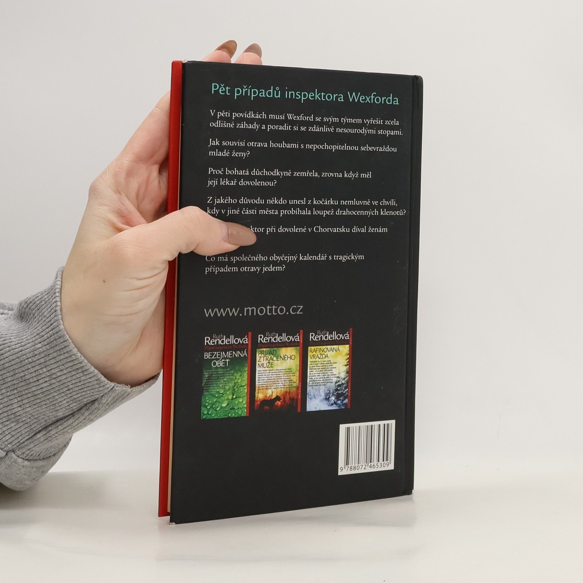 V pěti povídkách musí Wexford se svým týmem vyřešit zcela odlišné záhady a poradit si se zdánlivě nesourodými stopami. Jak souvisí otrava houbami s nepochopitelnou sebevraždou mladé ženy? Proč bohatá důchodkyně zemřela, zrovna když měl její lékař dovolenou? Z jakého důvodu někdo unesl z kočárku nemluvně ve chvíli, kdy v jiné části města probíhala loupež drahocenných klenotů? Proč se inspektor při dovolené v Chorvatsku díval ženám po nohách a co má společného obyčejný kalendář s tragickým případem otravy jedem? 1. vydání.