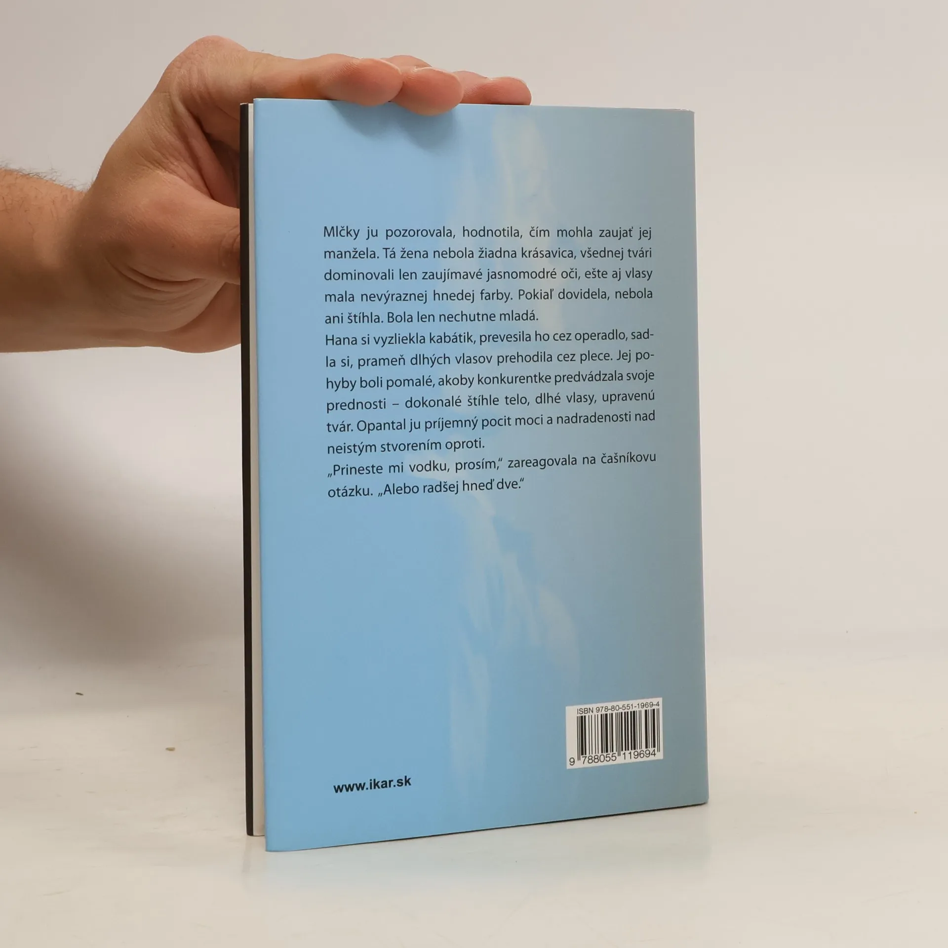 Atraktívna učiteľka Hanka, matka dvoch dcér, sa ocitne v nemocnici. Spočiatku dlho pátra v pamäti, kým si pospomína, ako a prečo sa ta dostala. Pred očami čitateľov sa odvíja príbeh plný lásky, sklamania i dramatických zvratov. Čo Hanku prinútilo, aby sa po rozvode hneď vrhla do nového vzťahu? Čo pomôže, keď sa nám zdá, že všetko okolo nás sa rúca, borí a niet sa čoho zachytiť? Ako vyjsť zo situácie, keď vám prestávajú rozumieť aj tí najbližší? Hanka svoj boj o seba samu napokon vyhráva a aj lásku nachádza tam, kde ju už nečakala...