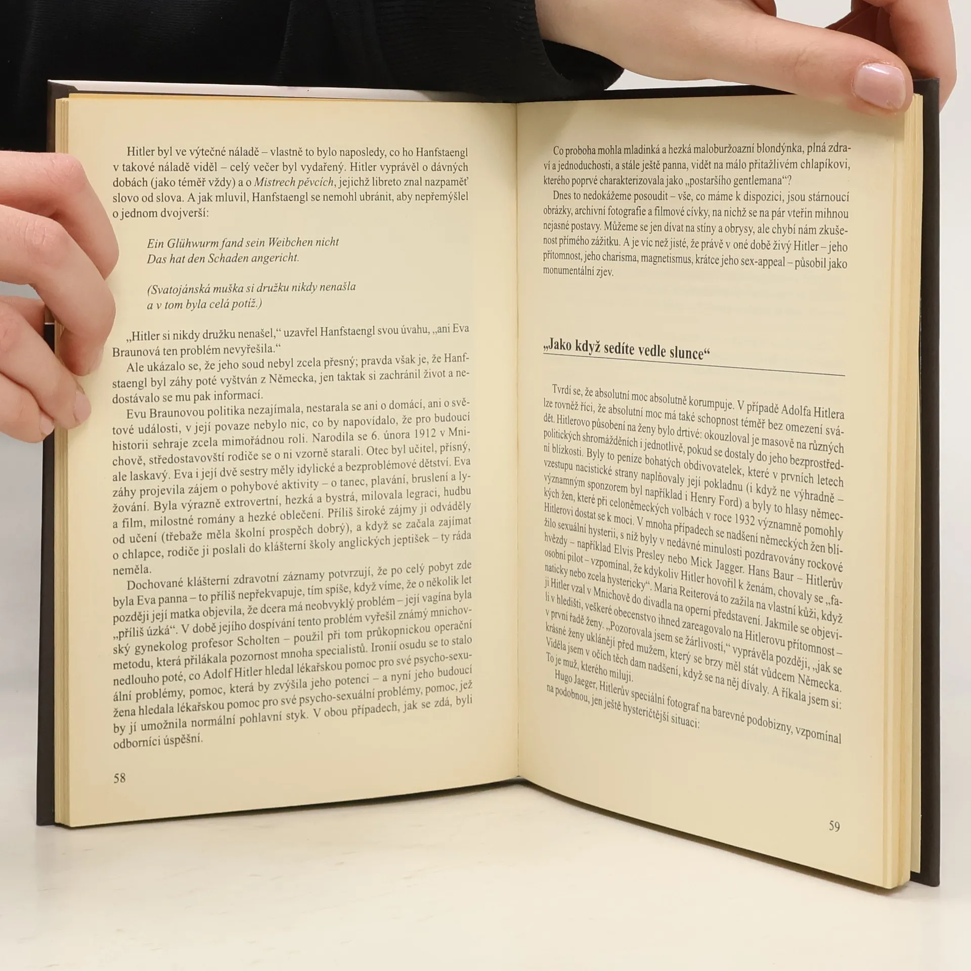 Britští autoři se na základě studia příslušné literatury, výpovědí svědků, dále zpráv z výslechů a osobní korespondence pokoušejí popsat soukromý Hitlerův život. Autoři se již dříve zabývali osobou A. Hitlera a nashromáždili o něm velké množství informací. Na základě svých studií se snaží dokázat, že Hitlerova sexualita byla deviantní a poznamenala celý jeho charakter. Soustřeďují se zejména na tři ženy - Hitlerovu neteř Geli Raubalovou, milenku a pozdější (i pozdní) manželku Evu Braunovou a osobní sekretářka Traudl Jungeovou. Velkou pozornost věnují posledním dnům A. Hitlera v r. 1945, zejména jeho sňatku s E. Braunovou v jeho osobním bunkru. Jako přídavek je přiřazena kapitola o muži, který s Hitlerem strávil jeho poslední hodiny a který po jeho smrti beze stopy zmizel.
