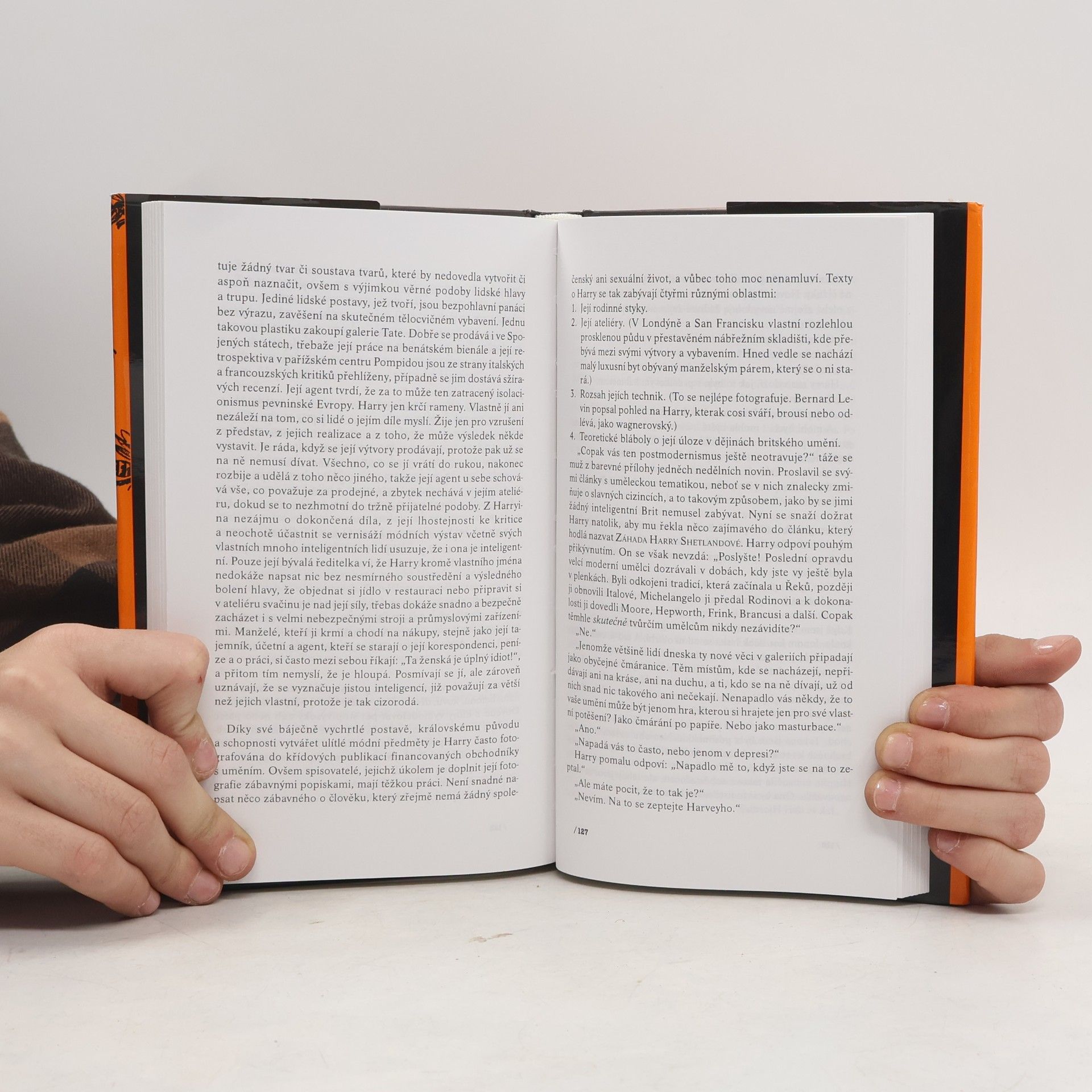 Děj se odehrává v současném Glasgow. Autor má neobyčejný dar humorně charakterizovat postavy jak lakonickým autorským hlasem, tak přímo skrze jejich promluvy. Románový příběh, složený z 13 povídek, vypráví o úspěšné, ale rezignované ženě, která dosáhne erotického uspokojení a osvobodí se od společenských konvencí v sadomasochistickém lesbickém vztahu. Prostor příběhu, mezi příslibem dobrodružství a jeho naplněním, je vyplněn životními osudy tří partnerek hrdinky, které pocházejí z různých společenských vrstev. Vylíčení jejich života autorovi umožňuje rozehrát řadu témat: třídní hierarchie v anglické společnosti, postavení umění v současném konzumním světě a feminismus. To vše je pojednáno brilantně, s notnou dávkou ironie a vytříbeným jazykem. Na konci románu se postavy, které se dříve navzájem neznaly, setkají a děj dostává nečekaný spád a vyvrcholení.