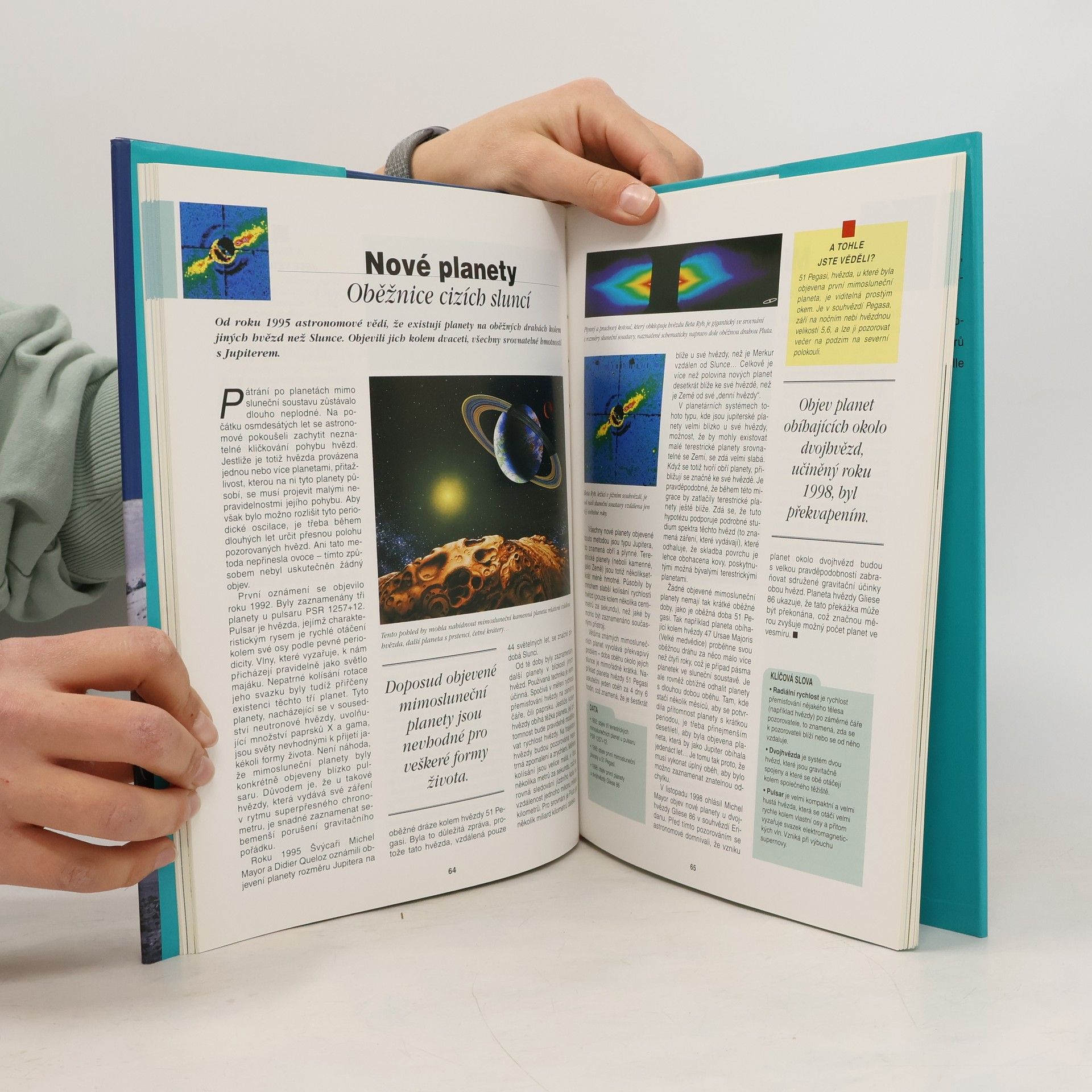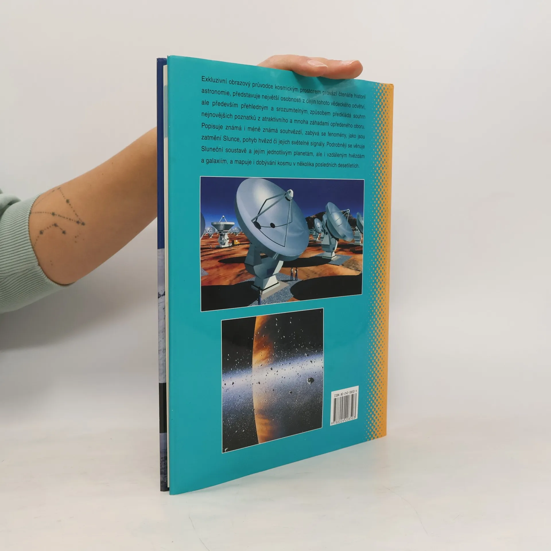 Pěkně vypravená obrazová publikace - encyklopedie je věnována astronomii a průzkumu vesmíru. Podává jasné a přehledné informace o sluneční soustavě a jejích jednotlivých planetách. Značnou pozornost autoři věnovali problematice galaxií a hvězd, různým typům hvězd podle stádia vývoje. Několik kapitol pojednává o průzkumu vesmíru a jeho budoucnosti. Informace jsou encyklopedického charakteru, doplněny jsou i nejnovějšími snímky z vesmírných družic a sond. Encyklopedii mohou úspěšně využít jako doplněk k výuce žáci a studenti škol.... celý text