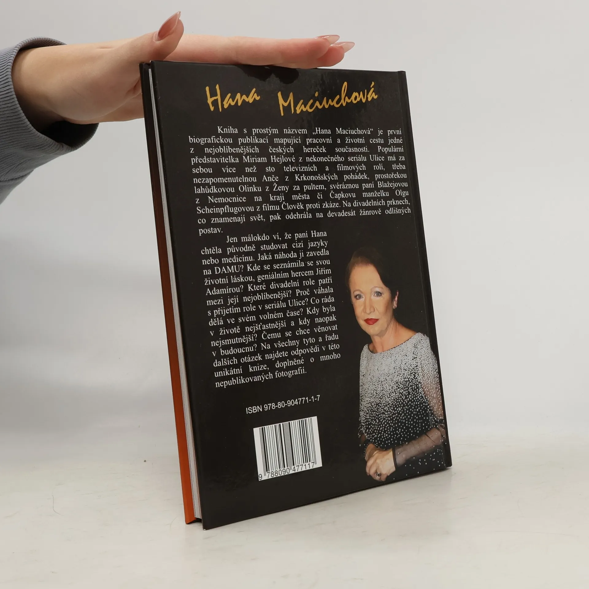 Kniha s prostým názvem „Hana Maciuchová“ je první biografickou publikací mapující pracovní a životní cestu jedné z nejoblíbenějších českých hereček současnosti. Populární představitelka Miriam Hejlové z nekonečného seriálu Ulice má za sebou více než sto televizních a filmových rolí, třeba nezapomenutelnou Anče z Krkonošských pohádek, prostořekou lahůdkovou Olinku z Ženy za pultem, svéráznou paní Blažejovou z Nemocnice na kraji města či Čapkovu manželku Olgu Scheinpflugovou z filmu Člověk proti zkáze. Na divadelních prknech, co znamenají svět, pak odehrála na devadesát žánrově odlišných postav. Jen málokdo ví, že paní Hana chtěla původně studovat cizí jazyky nebo medicínu. Jaká náhoda ji zavedla na DAMU? Kde se seznámila se svou životní láskou, geniálním hercem Jiřím Adamírou? Které divadelní role patří mezi její nejoblíbenější? Proč váhala s přijetím role v seriálu Ulice? Co ráda dělá ve svém volném čase? Kdy byla v životě nejšťastnější a kdy naopak nejsmutnější? Čemu se chce věnovat v budoucnu? Na všechny tyto a řadu dalších otázek najdete odpovědi v této unikátní knize, doplněné o mnoho nepublikovaných fotografií. Tato kniha patří do speciální Edice ČESKÉ HVĚZDY, ve které jako první vyšla kniha „Zlata Adamovská“.