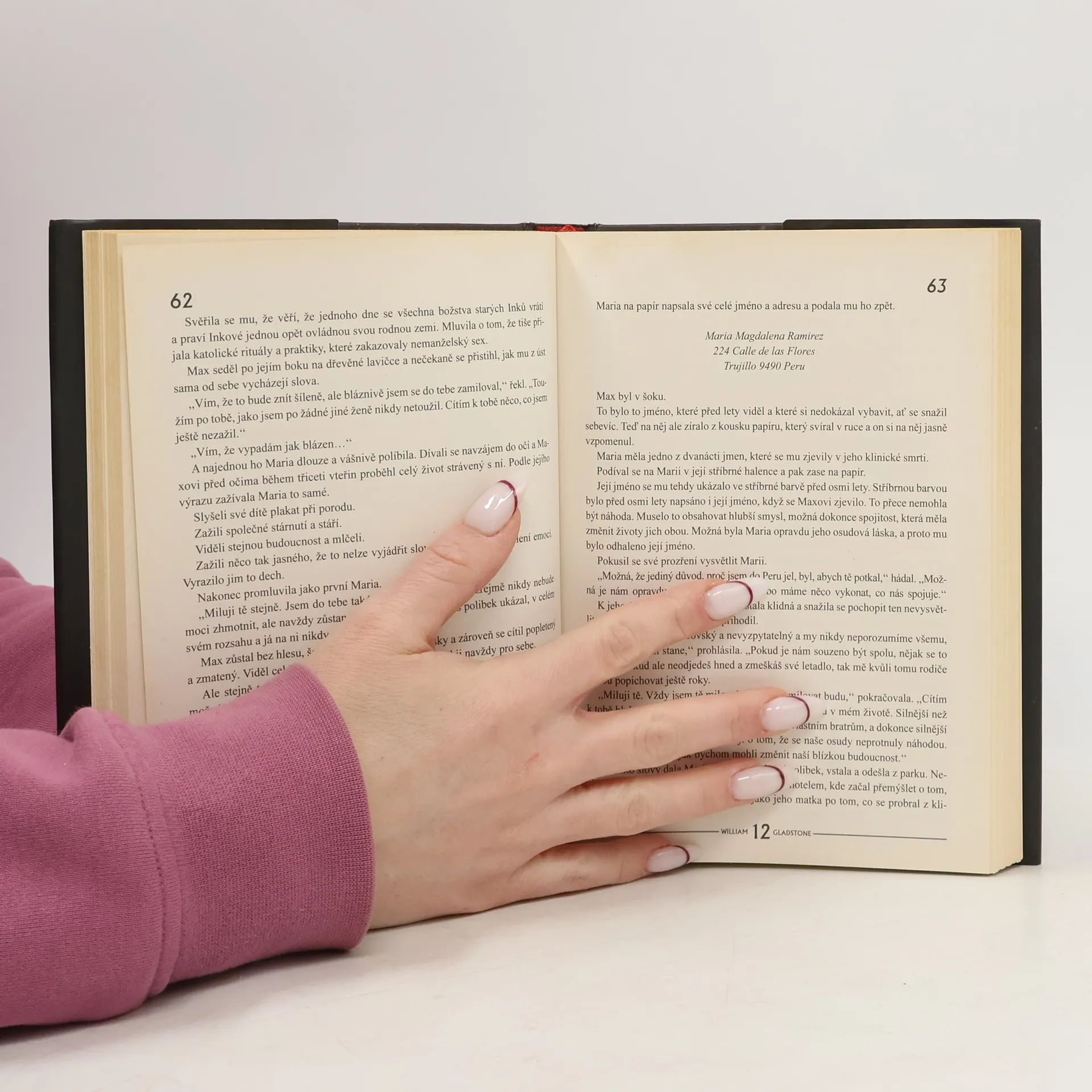 Námětem románu Williama Gladstonea 12 je dávné mayské proroctví o tom, že 21. prosince roku 2012 přijde konec světa, konec jedné civilizační éry. Podobný motiv se v literatuře i filmu objevil nejednou, ale Gladstone se rozhodl přistoupit k němu poněkud osobitějším způsobem. V románu sledujeme životní pouť Maxe, který již od narození vykazoval velmi prazvláštní rysy. Například až do šesti let nemluvil, ale potom se zničehonic rozpovídal a již v tomto věku dokázal formulovat velmi složité myšlenky. Max měl staršího bratra Louise, který se k němu vždy choval nepřátelsky, posmíval se mu a ubližoval mu. Jak Max vyrůstal, projevovala nadání v mnoha oblastech a ve škole patřil k nejlepším. Nejdůležitější událost v životě se mu přihodila v patnácti letech, kdy se ocitl na pokraji smrti a měl velice zvláštní vidění. Zjevilo se mu dvanáct různých jmen, každé v jiné barvě. Poté, co se Maxův stav zlepší, zmocní se ho neotřesitelná jistota, že jména, která viděl, v sobě musí ukrývat nesmírnou důležitost.