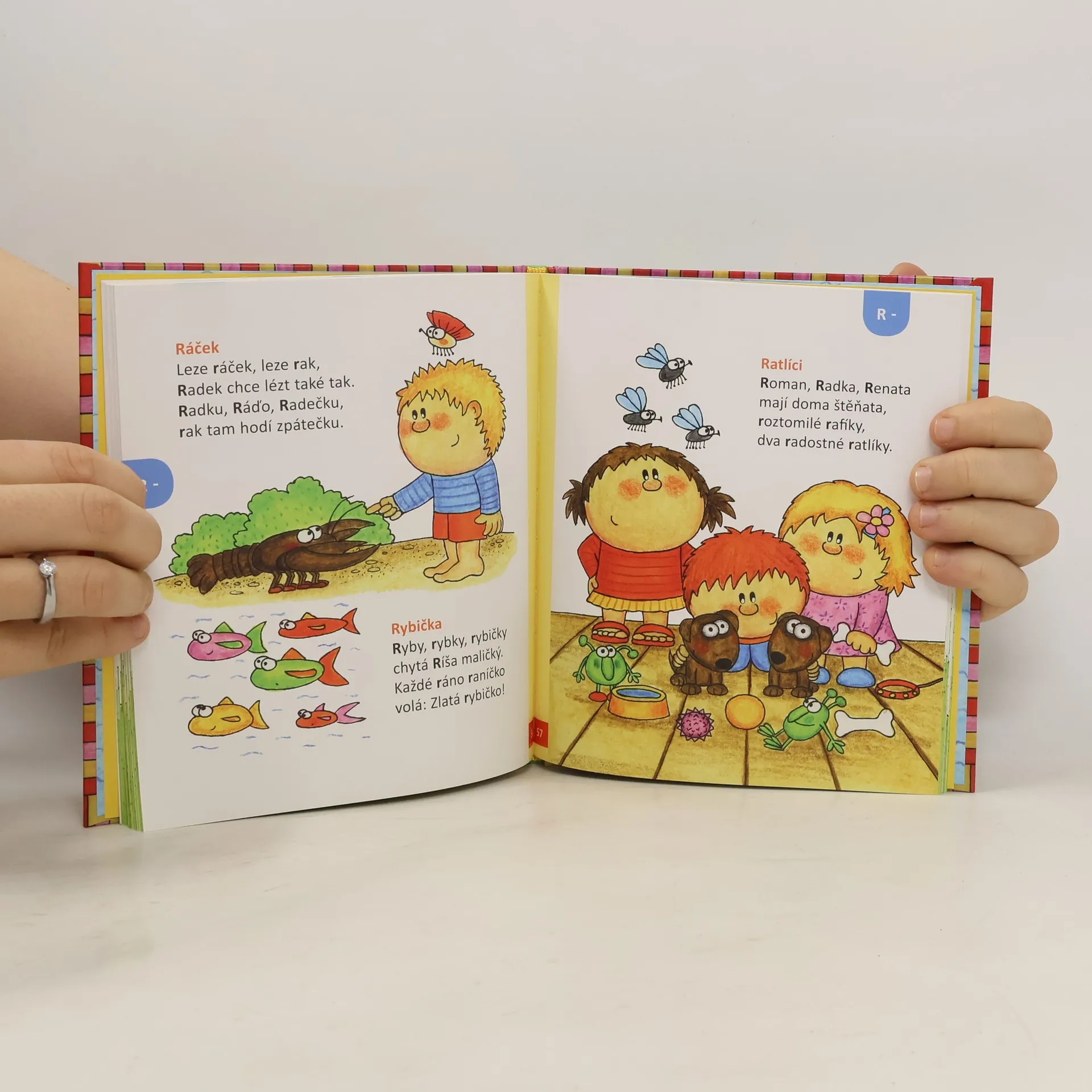 Soubor říkanek pro děti od 5 let je určen především k procvičování výslovnosti hlásek R a Ř. Autorky-logopedky při psaní a následném řazení říkanek dodržují pravidlo jedné cvičené souhláskové skupiny v každé říkance a zastoupení všech, tedy i méně častých skupin. Dítě se tak může učit říkanku jen s tou souhláskovou skupinou (slabikou), kterou už zvládá ve slovech, nebo si naopak vybere pouze to spojení, jež právě nacvičuje pod vedením logopeda. Pro předškolní děti jsou básničky zábavou; učí se je rády. Proto mohou říkanky doprovázené veselými obrázky E. Rémišové zaujmout také děti, které nemají s výslovností žádné potíže.