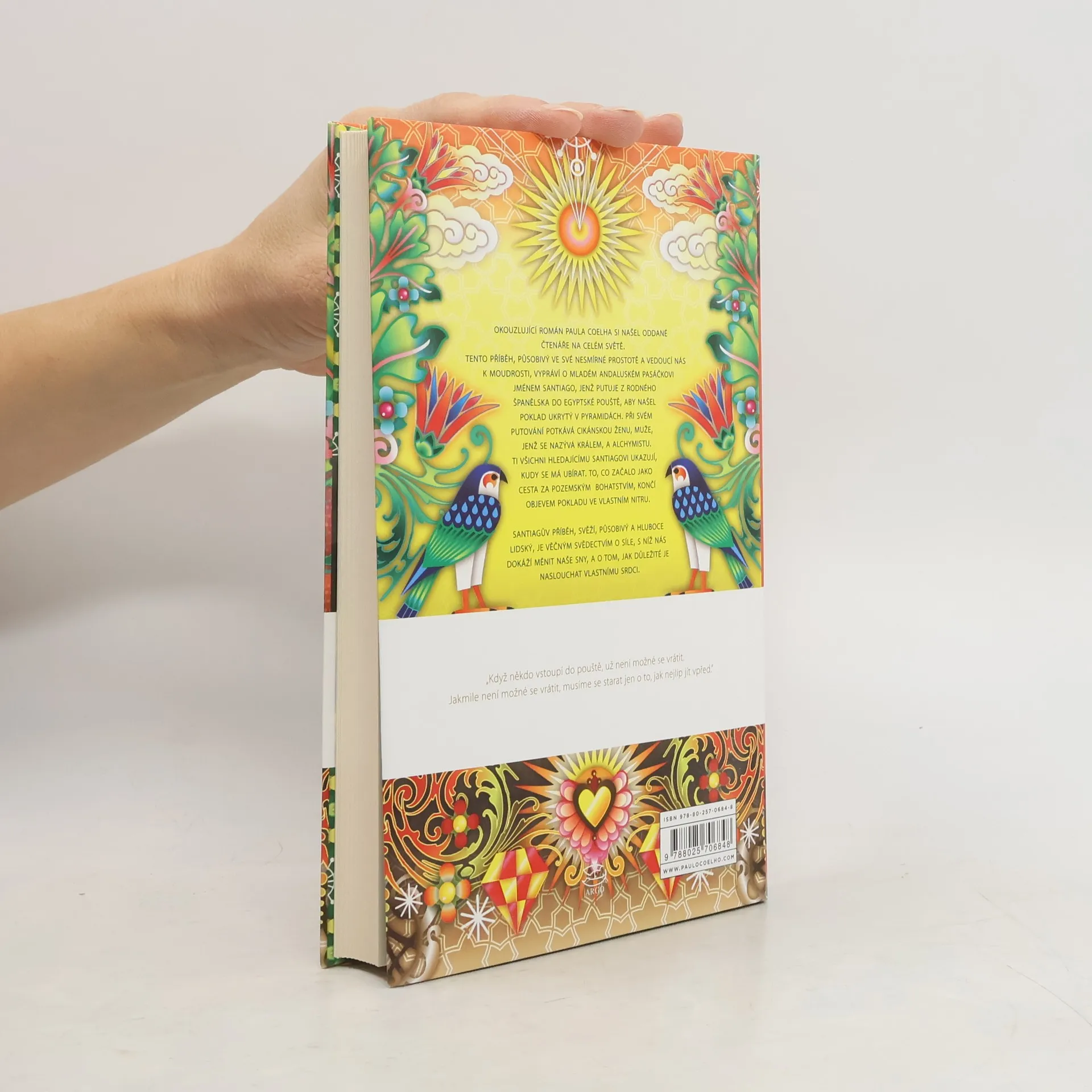 Román Alchymista – největší brazilský bestseller všech dob – byl dosud přeložen do 34 jazyků a prodalo se ho na 10 milionů výtisků. Takřka pohádkové vyprávění o cestě španělského pastýře za zakopaným pokladem, vycházející z příběhu o splněném snu ze sbírky Tisíc a jedna noc, je zároveň výzvou k naplnění vlastního osudu i poznáním posvátnosti světa, v němž žijeme. Na cestě za oním dvojím pokladem, plné zkoušek a důležitých setkání, je třeba dbát všech znamení a s neustálou trpělivostí a odvahou (jako alchymista sledující proměnu obyčejného kovu ve zlato) přetvořit samu svou osobnost.