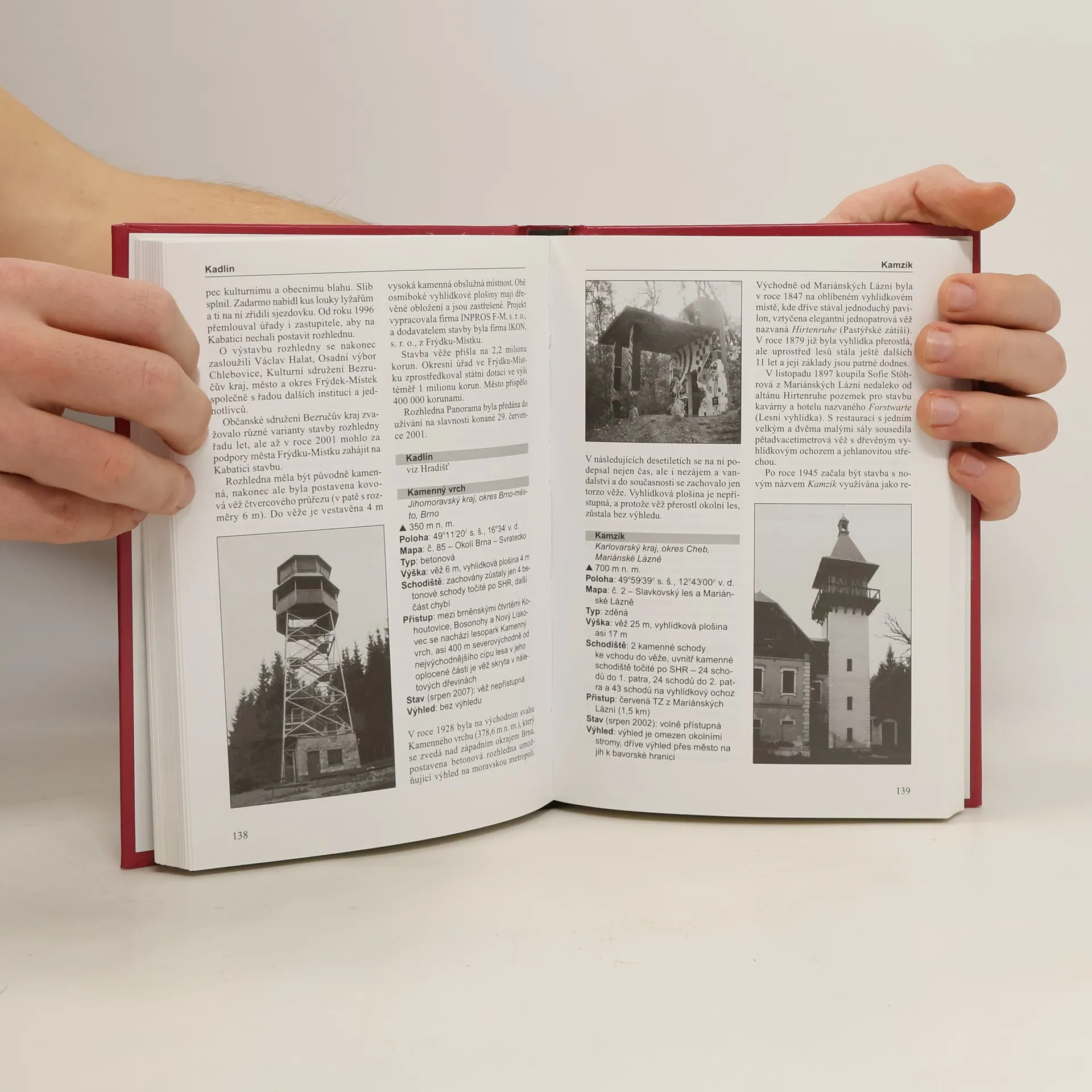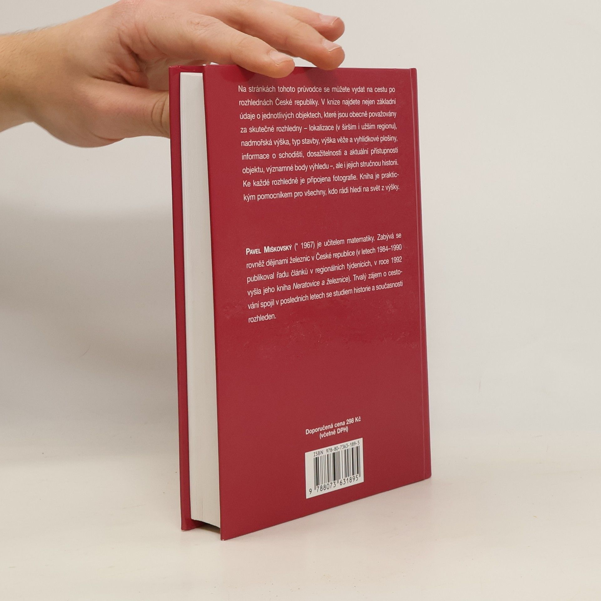 Třetí, aktualizované vydání. Váz., 328 stran, 260 ilustrací, 298 Kč, ISBN , EAN 9788073631895, řada Mimo edice, vydání 3, poprvé vyšlo 03.06.2008. Od 19. století jsou rozhledny součástí naší krajiny, ale i turistického ruchu. Kompletní průvodce po rozhlednách v našich zemích přináší detailní informace o více jak 220 stojících objektech (z nichž 170 je běžně přístupných), o jejich historii, typu, nadmořské výšce, výšce věže, možných výhledech a spoustu dalších praktických údajů (vstupné, otevírací doba, spojení atd.).