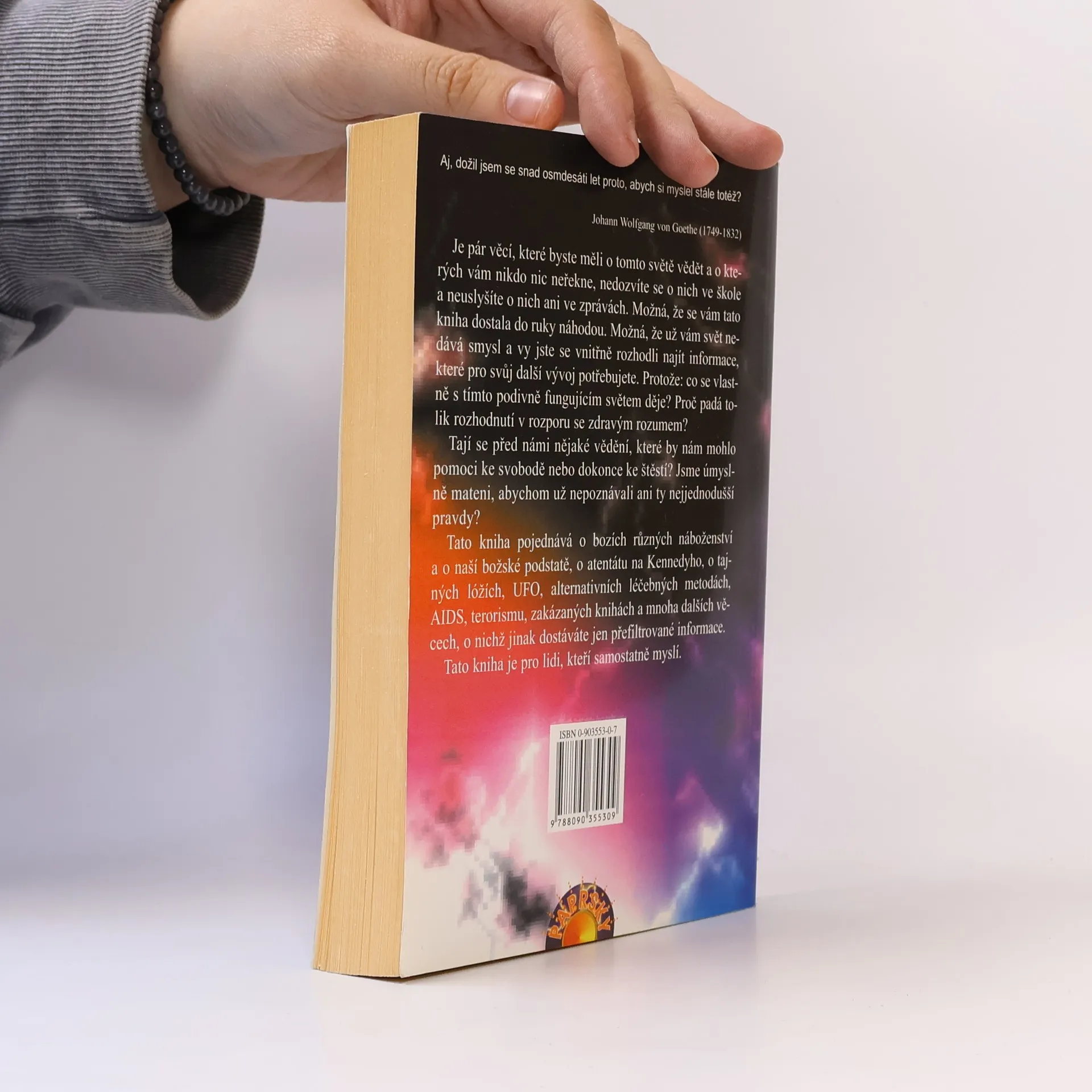 Je pár věcí, které byste měli o tomto světě vědět a o kterých vám nikdo nic neřekne, nedozvíte se o nich ve škole a neuslyšíte o nich ani ve zprávách. Možná, že se vám tato kniha dostala do ruky náhodou. Možná, že už vám svět nedává smysl a vy jste se vnitřně rozhodli najít informace, které pro svůj další vývoj potřebujete. Protože: co se vlastně s tímto podivně fungujícím světem děje? Proč padá tolik rozhodnutí v rozporu se zdravým rozumem? Tají se před námi vědění, které by nám mohlo pomoci ke svobodě nebo dokonce ke štěstí? Jsme úmyslně mateni, abychom už nepoznali ani ty nejjednodušší pravdy? Tato kniha pojednává o bozích různých náboženství a o naší božské podstatě, o atentátu na Kennedyho, o tajných lóžích, UFO, o alternativních léčebných metodách, o AIDS, o terorismu, o zakázaných knihách a mnoha dalších věcech, o nichž jinak dostáváte jen přefiltrované informace.