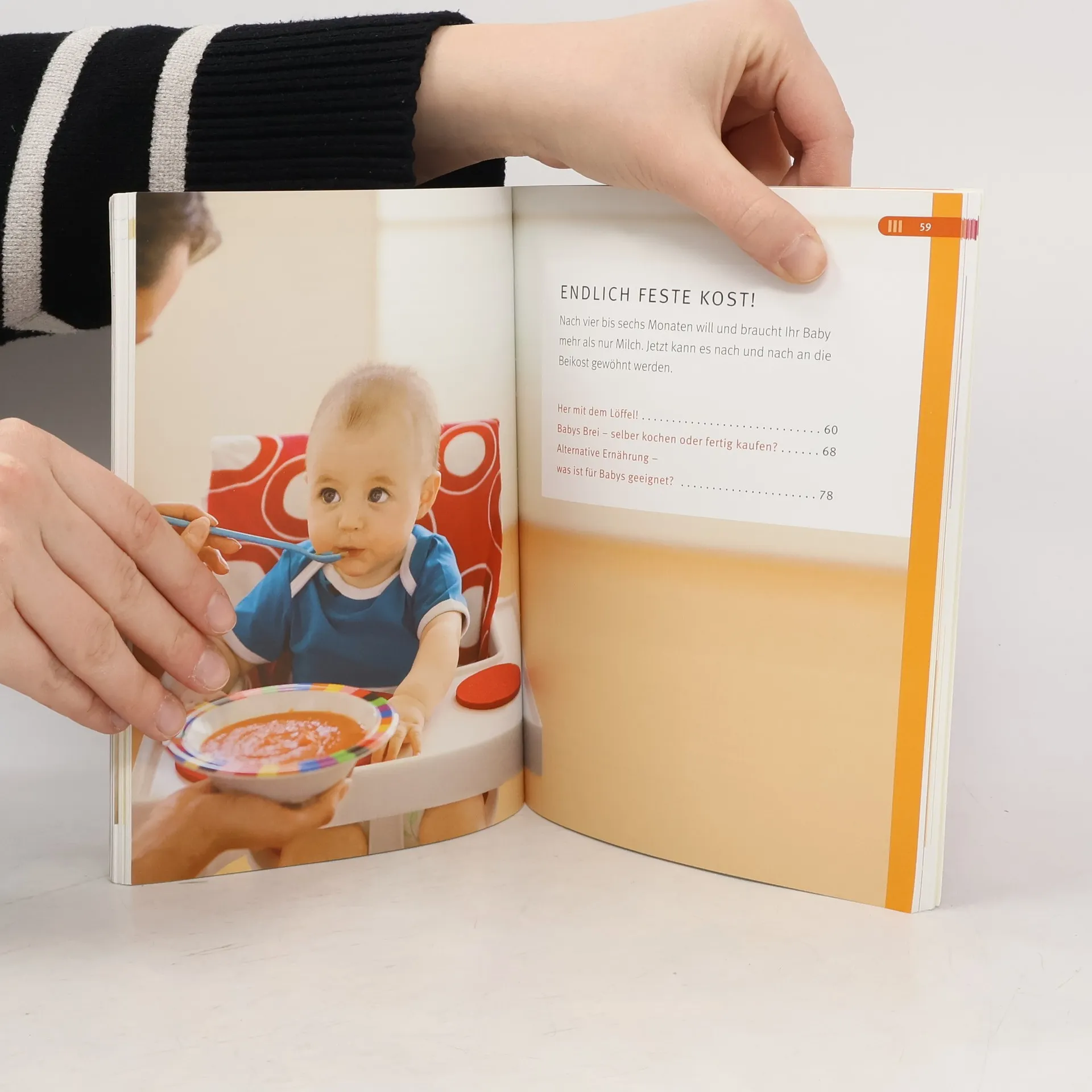 Stillen oder Fläschchen? Welche Milch ist richtig für mein Baby? Und wann gibt’s den ersten Brei? Was soll mein Kind trinken und sind fertige Gläschen vielleicht doch besser als ihr Ruf? Die Ernährung des Babys ist eines der wichtigsten Themen im ersten Lebensjahr und stellt jede frischgebackene Mutter vor eine Fülle von offenen Fragen. Dieser Ratgeber zum Thema Babyernährung liefert fundierte und kompetente Entscheidungshilfen. Für jede Variante gibt es viele nützliche Tipps und Infos, worauf bei der Zubereitung bzw. beim Kauf zu achten ist. Die Rezepte fürs Baby lassen sich mit geringem Aufwand in Gerichte für die ganze Familie abwandeln. Gesundheitliche Aspekte wie z. B. Allergievorbeugung und die richtige Ernährung bei Allergikerbabys werden ausführlich behandelt. Der beigelegte GU-Folder bietet eine sehr gute und schnelle Übersicht, was das Baby in welchem Lebensmonat essen darf.
