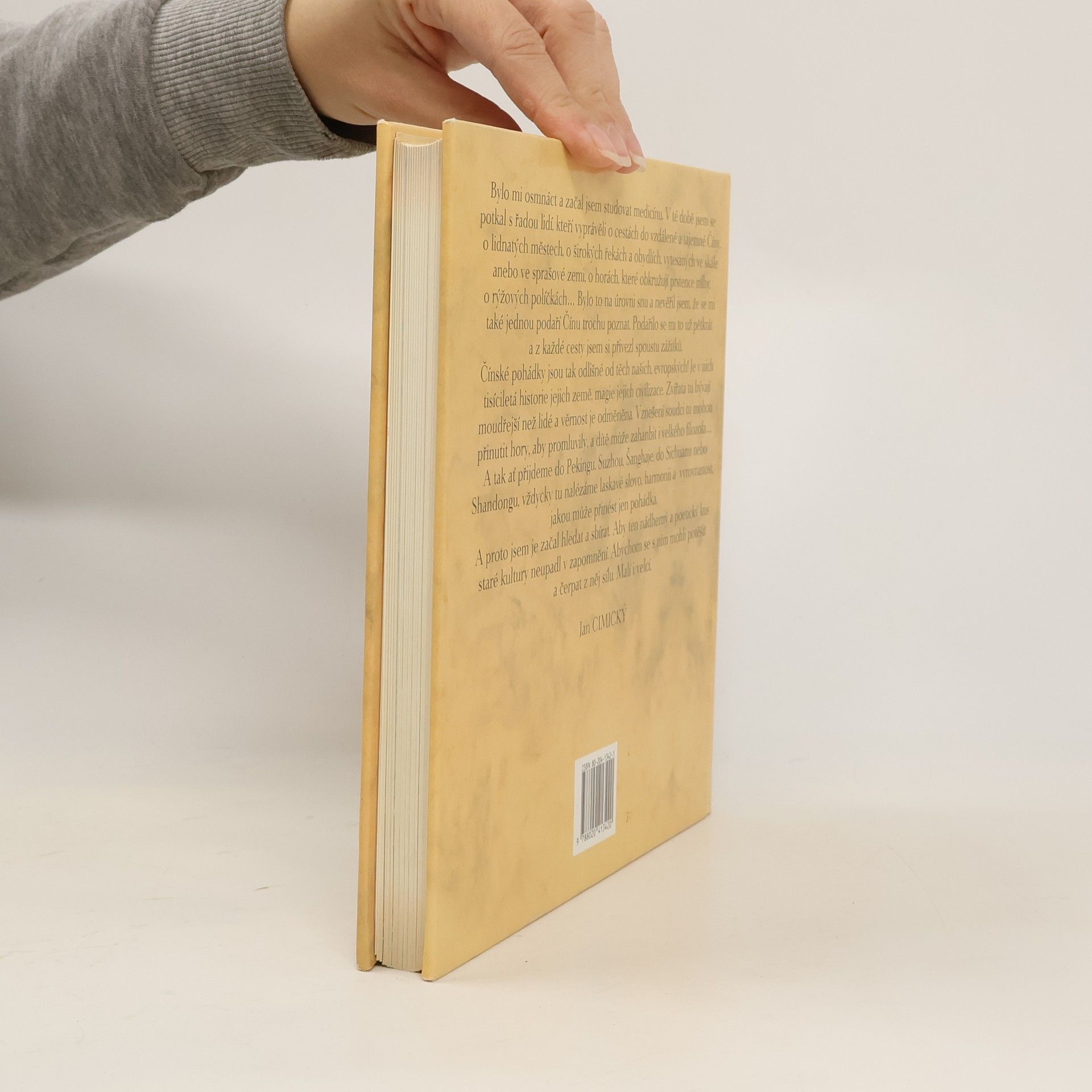 Jan Cimický nevěřil, že se mu jednou podaří Čínu trochu poznat. Podařilo se mu to už pětkrát a z každé cesty si přivezl spoustu zážitků.. a pohádky. Čínské pohádky jsou tak odlišné od těch našich, evropských! Je v nich tisíciletá historie jejich země, magie jejich civilizace. Zvířata tu bývají moudřejší než lidé a věrnost je odměněna. Vznešení soudci tu mohou přinutit hory, aby promluvily, a dítě může zahanbit i velkého filozofa... A tak ať přijdeme do Pekingu, Suzhou, Šanghaje, do Sichuanu nebo Shandongu, vždycky tu nalézáme laskavé slovo, harmonii a vyrovnanost jakou může přinést jen pohádka. A proto je Jan Cimický začal hledat a sbírat. Aby ten nádherný a poetický kus staré kultury neupadl v zapomnění. Abychom se s ním mohli potěšit a čerpat z něj.