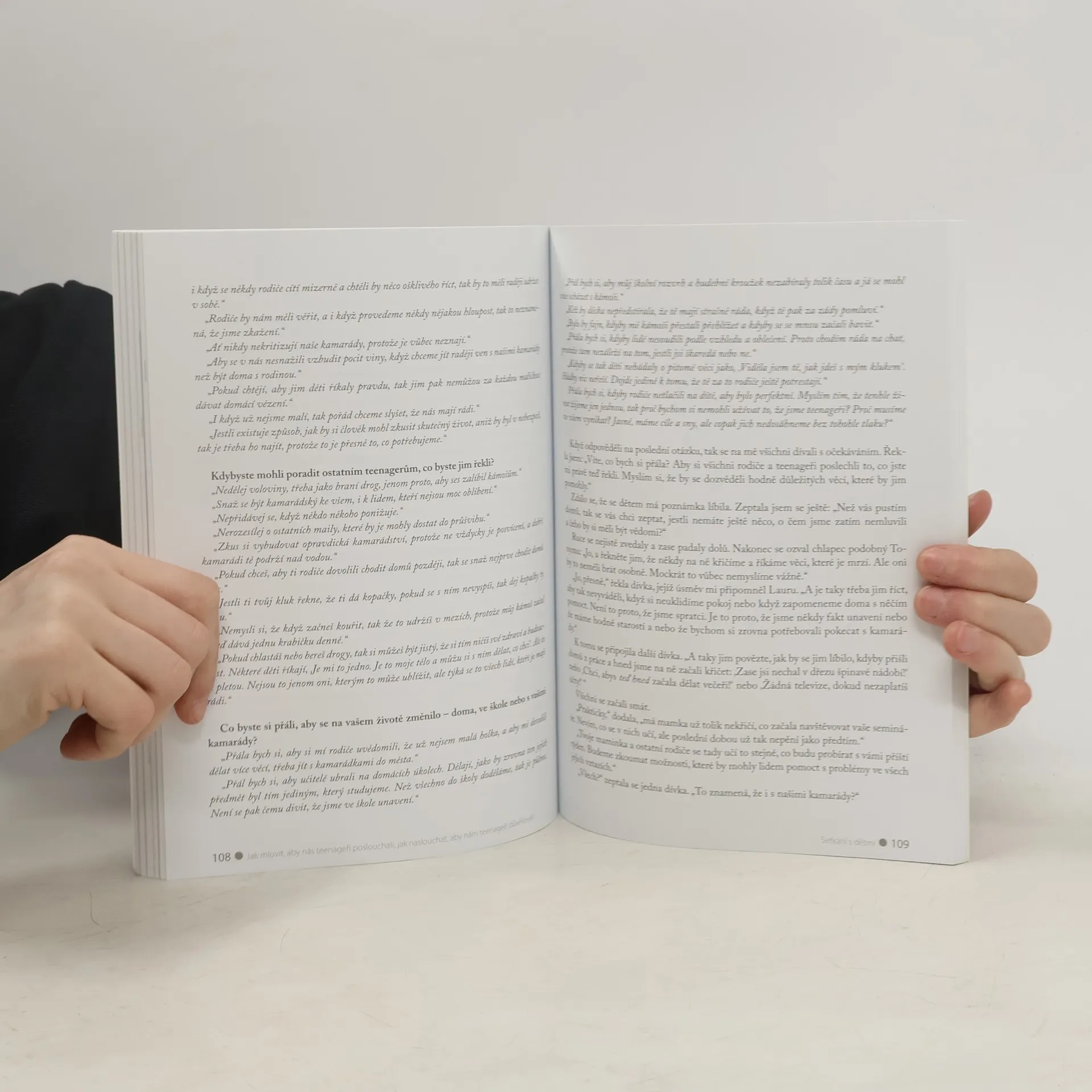 Světový bestseller. Názorný, srozumitelný a velmi čtivý návod jak vycházet s teenagery. Název přesně vystihuje obsah knihy. Ukázkové dialogy a situace řeší jak s teenagery mluvit, aby slova dospělých brali vážně, a poskytují rady jak teenagerům naslouchat, aby v dospělých viděli partnera, nikoliv nepřítele. Autorky využívají své zkušenosti ze seminářů s rodiči a jejich dospívajícími dětmi.