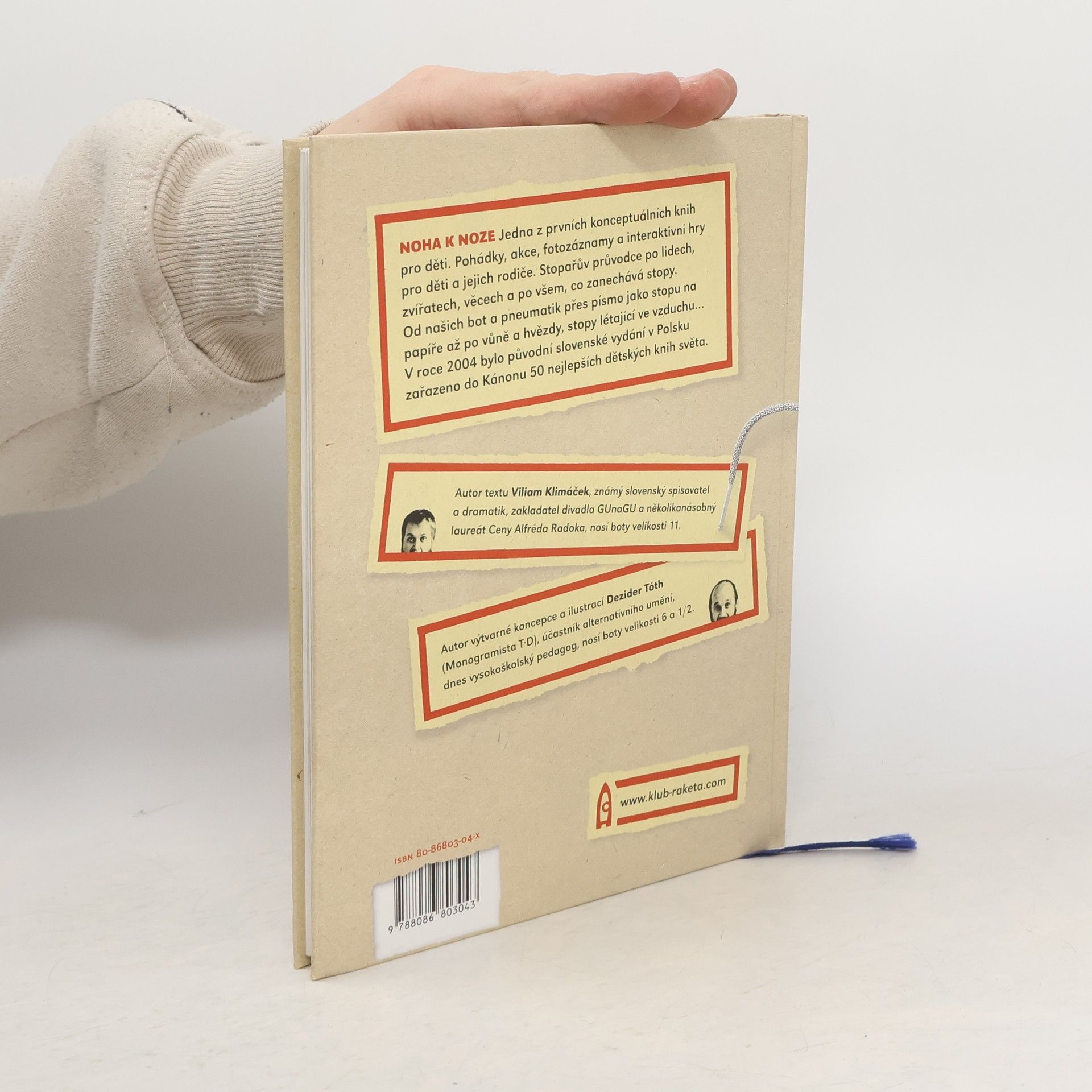 Slovenský režisér, dramatik, divadelník a spisovatel Viliam Klimáček a fotograf Dezider Tóth se nechali inspirovat otiskem nohou (ale i jiných nástrojů či materiálů zanechávajících svá poselství) a zvou čtenáře po stopách stop. Knížka, jedna z prvních konceptuálních knih na slovenském trhu, je určena pro čtenáře od 6 do 60 let. Obsahuje pohádky, záznamy akce, fotozáznamy a interaktivní hry, a autoři ji charakterizují jako stopařova průvodce po lidech, zvířatech a věcech, po všem, co zanechává stopy.