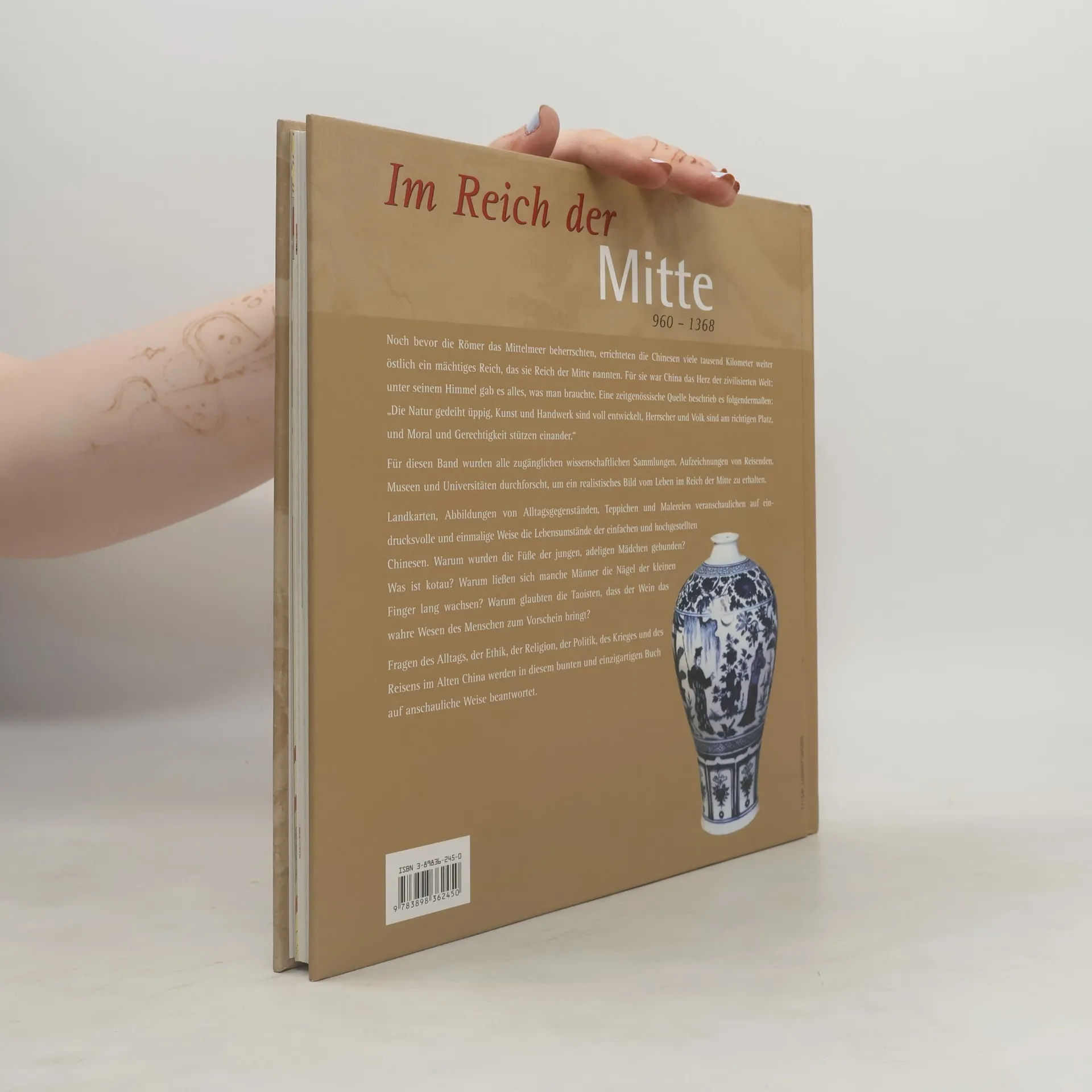 Noch bevor die Römer das Mittelmeer beherrschten, errichteten die Chinesen viele tausend Kilometer weiter östlich ein mächtiges Reich, das sie Reich der Mitte nannten. Für sie war China das Herz der zivilisierten Welt; unter seinem Himmel gab es alles, was man brauchte. eine zeitgenössische Quelle beschrieb es folgendermaßen: „Die Natur gedeiht üppig, Kunst und HAndwerk sind voll entwickelt, Herrscher und Volk sind am richtigen Platz, und Moral und Gerechtigkeit stützen einander.“ Fragen des Alltags, der Ethik, der Religion, der Politik, des Krieges und des Reisens im Alten China werden in diesem bunten und einzigartigen Buch auf anschauliche Weise beantwortet