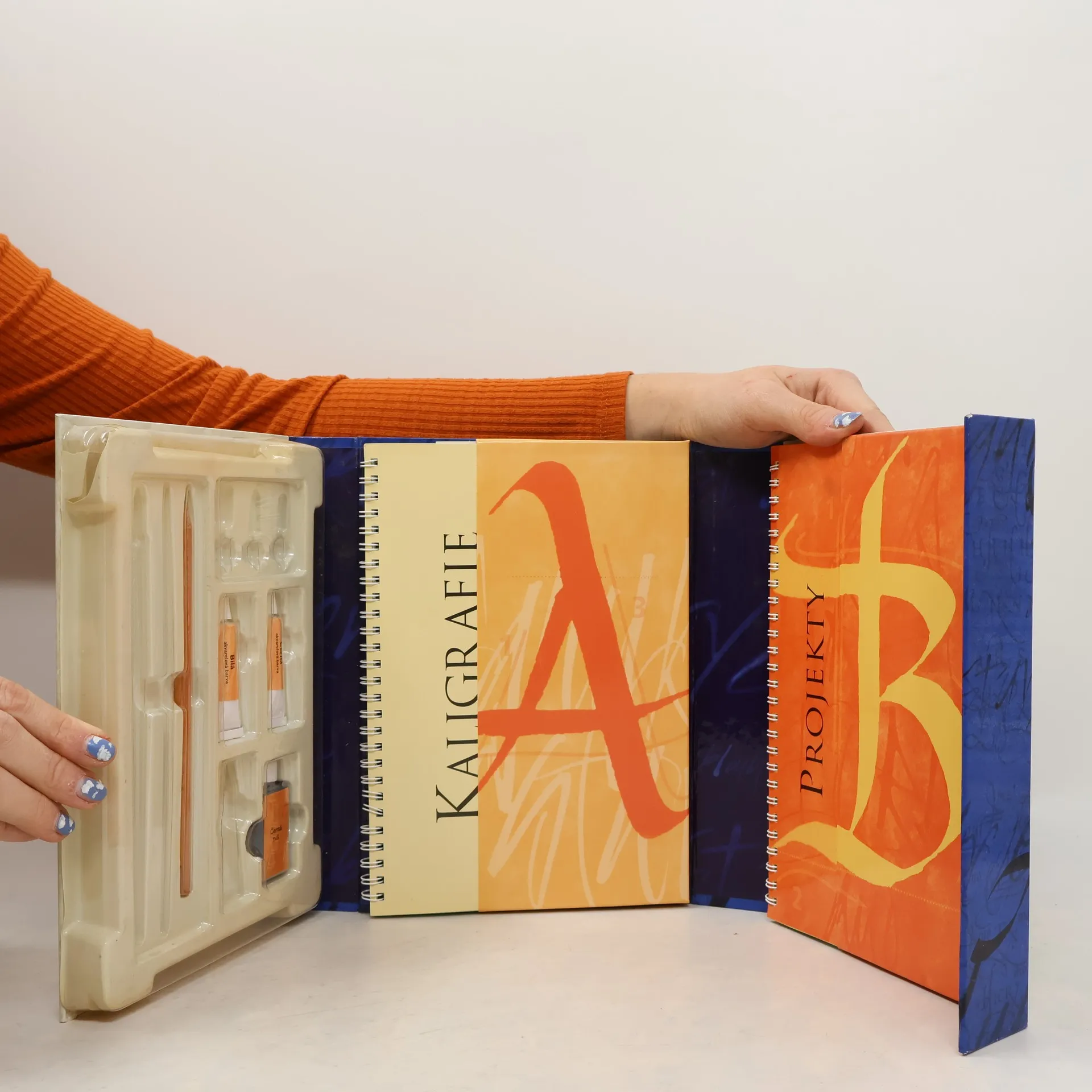 Učebnice základních kaligrafických technik zvaná KALIGRAFIE se stane neocenitelným pomocníkem všech začínajících kaligrafů, které názorně a zároveň velmi poutavě provede od nejzákladnějích technik až ke složitému kaligrafickému umění. V praktickém obalu sada per, násadka, štětec, tužka, vodové barvy a tuš.