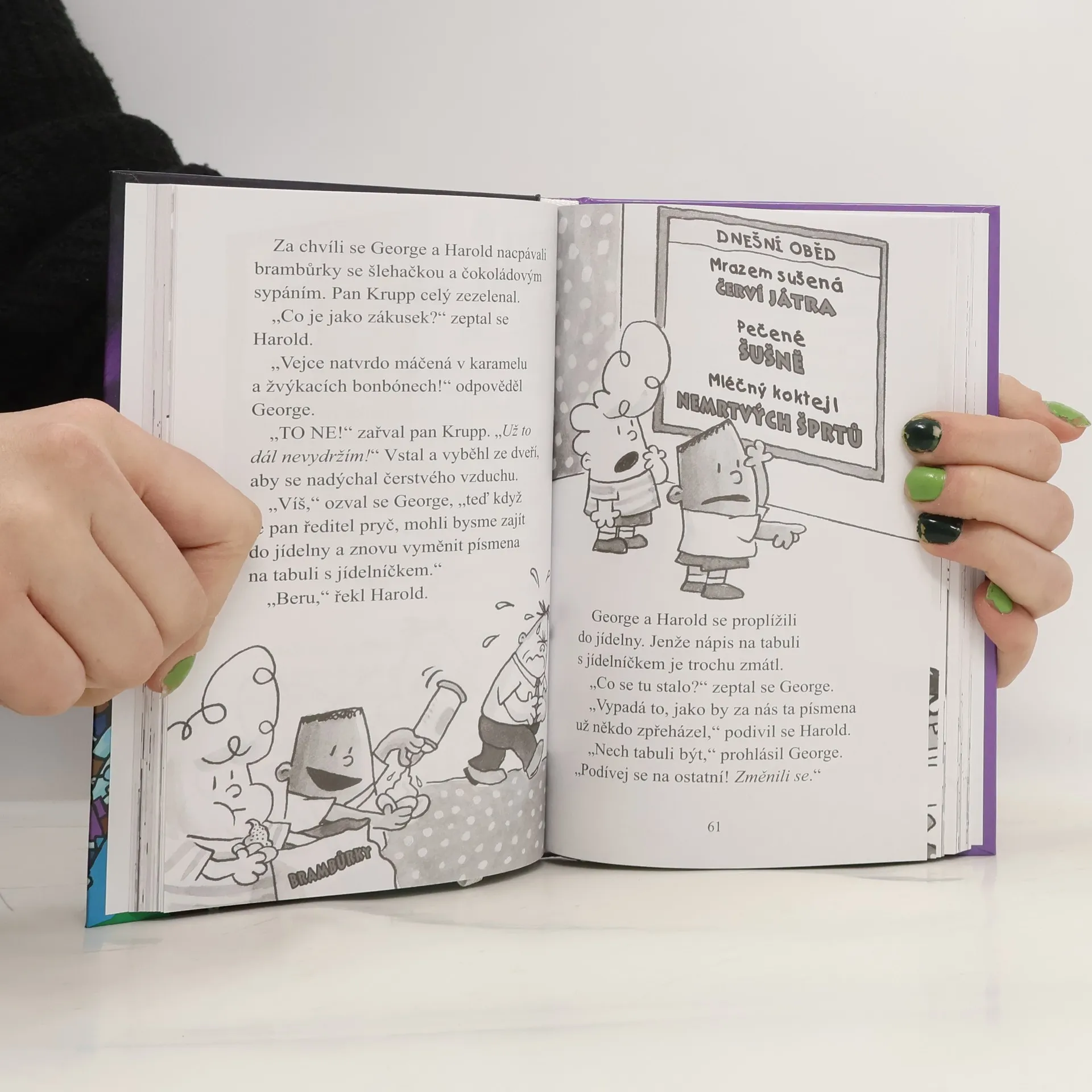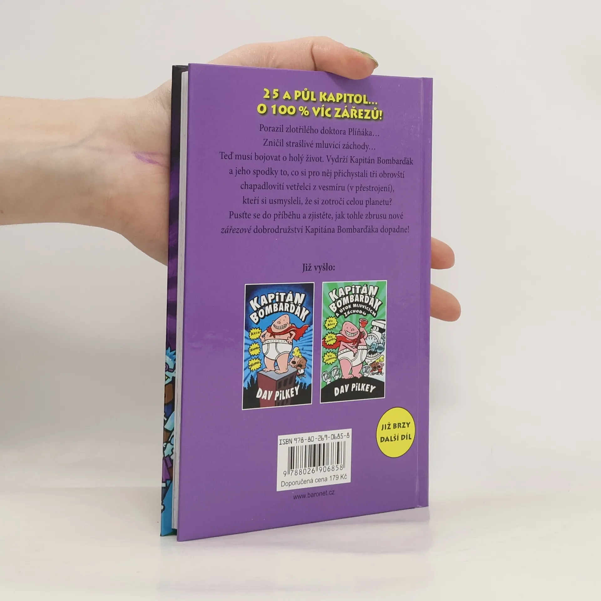 Kapitán Bombarďák se vrací! Porazil zlotřilého doktora Plíňáka, zničil strašlivé mluvící záchody… a nyní musí opět bojovat o osud celého světa! George a Harold si na Základní škole Jeroma Horwitze stihli udělat legraci snad ze všech. Když po jejich posledním šprýmu dají výpověď všechny kuchařky ze školní jídelny, ředitel Krupp za ně rychle najde náhradu – ale netuší, že to jsou tři chapadlovití mimozemšťané v přestrojení, kteří chtějí ovládnout svět! Dokážou George a Harold a Kapitán Bombarďák všechny zachránit, než bude příliš pozdě?