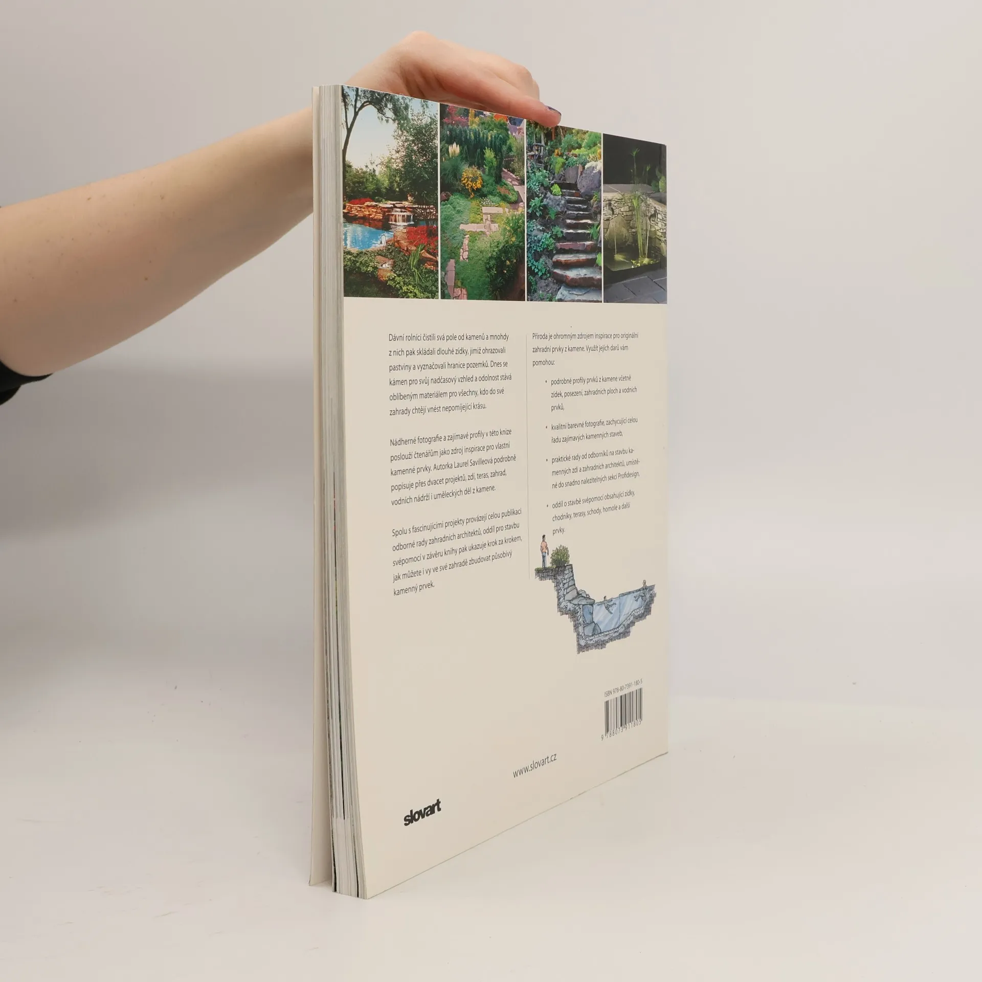 Nádherné fotografie a zajímavé profily v této knize poslouží jako zdroj inspirace pro vlastní kamenné prvky. Autorka podrobně popisuje přes dvacet projektů, zdí, teras, zahrad, vodních nádrží i uměleckých děl z kamene