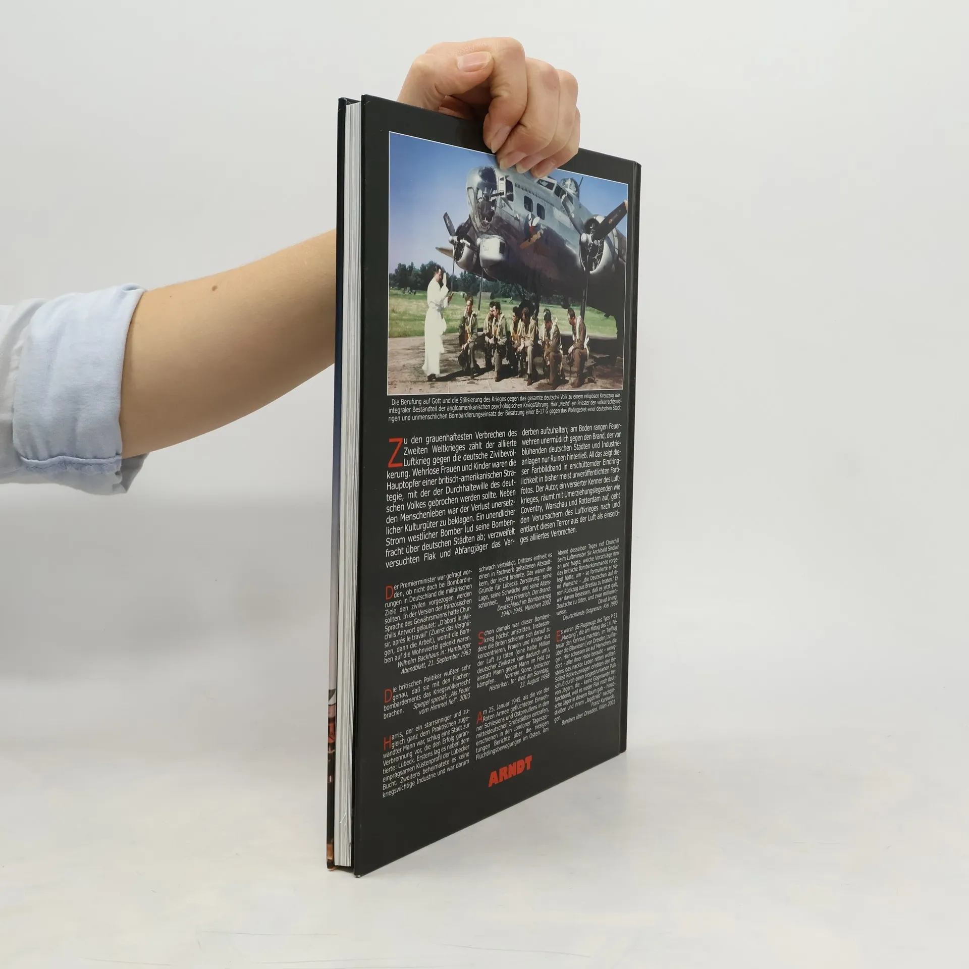 Zu den grauenhaftesten Verbrechen des Zweiten Weltkrieges zählt der alliierte Luftkrieg gegen die deutsche Zivilbevölkerung. Wehrlose Frauen und Kinder waren die Hauptopfer einer britisch-amerikanischen Strategie, mit der der Durchhaltewille des deutschen Volkes gebrochen werden sollte. Neben den Menschenleben war der Verlust unersetzlicher Kulturgüter zu beklagen. Ein unendlicher Strom westlicher Bomber lud seine Bombenfracht über deutschen Städten ab; verzweifelt versuchten Flak und Abfangjäger das Verderben aufzuhalten; am Boden rangen Feuerwehren unermüdlich gegen den Brand, der von blühenden deutschen Städten und Industrieanlagen nur Ruinen hinterließ. All das zeigt dieser Farbbildband in erschütternder Eindringlichkeit in meist bisher unveröffentlichten Farbfotos. Der Autor, ein versierter Kenner des Luftkrieges, räumt mit Umerziehungslegenden wie Coventry, Warschau und Rotterdam auf, geht den Verursachern des Luftkrieges nach und entlarvt diesen Terror aus der Luft als einseitiges alliiertes Verbrechen.