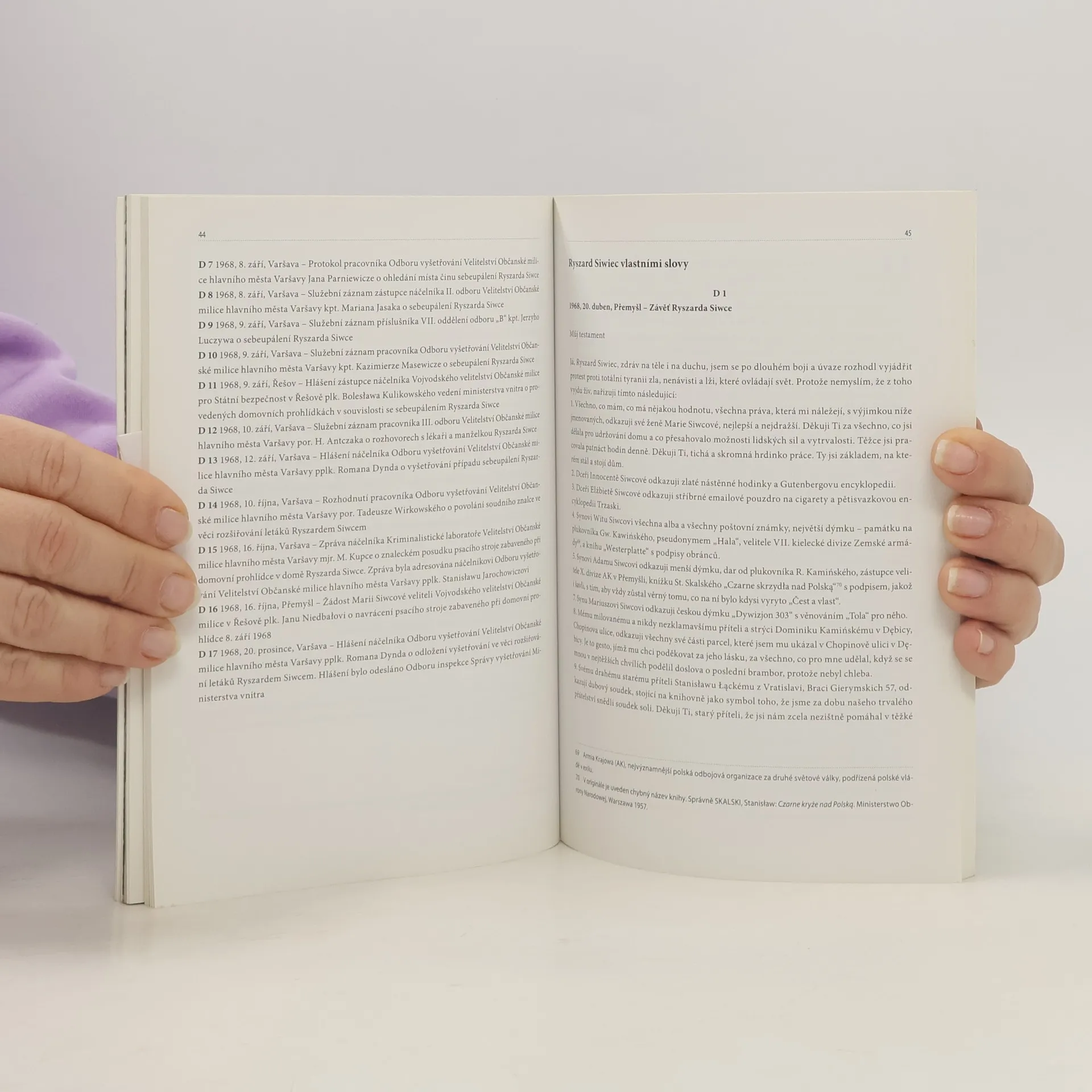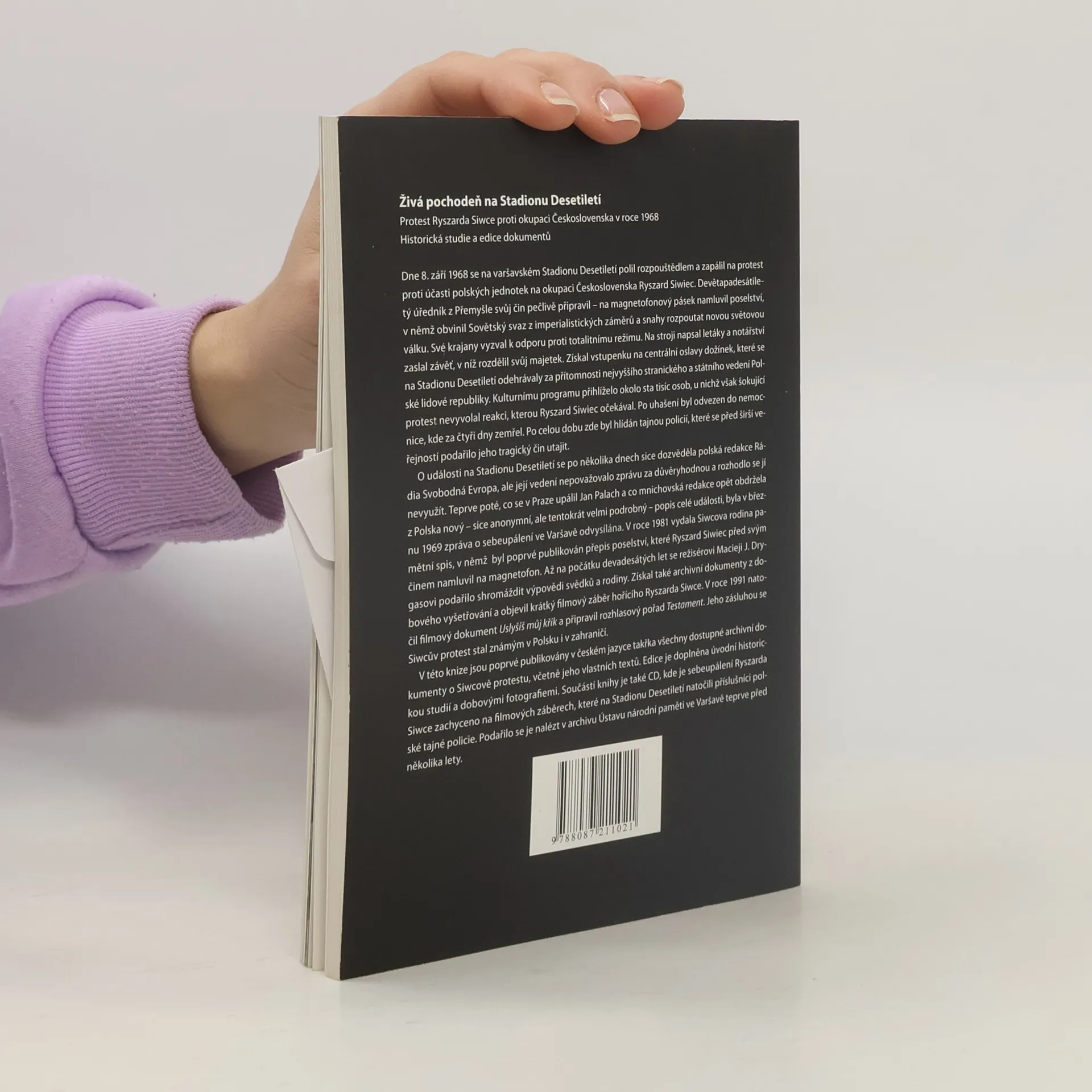 Publikace se zaměřuje na protest Ryszarda Siwce, který 8. září 1968 na varšavském Stadionu Desetiletí zapálil sám sebe na protest proti okupaci Československa. Devětapadesátiletý úředník si svůj čin pečlivě připravil, nahrál poselství obviňující Sovětský svaz z imperialismu a vyzval krajany k odporu proti totalitnímu režimu. Vytvořil letáky a sepsal závěť, kterou zaslal notářství. Na centrální oslavy dožínek, kde bylo přítomno kolem sta tisíc lidí, jeho protest nezískal očekávanou reakci. Po uhašení byl hospitalizován, ale čtyři dny poté zemřel, přičemž byl pod dohledem tajné policie, která jeho čin utajila. O události se sice brzy dozvěděla redakce Rádia Svobodná Evropa, ale zprávu nepovažovala za důvěryhodnou. Až po sebeupálení Jana Palacha byla v březnu 1969 zpráva o Siwcově protestu odvysílána. V roce 1981 jeho rodina vydala pamětní spis, kde byl poprvé publikován přepis jeho poselství. V devadesátých letech shromáždil režisér Maciej J. Drygas svědectví a archivní dokumenty, včetně záběrů hořícího Siwce. V roce 1991 natočil dokument Uslyšíš můj křik.
