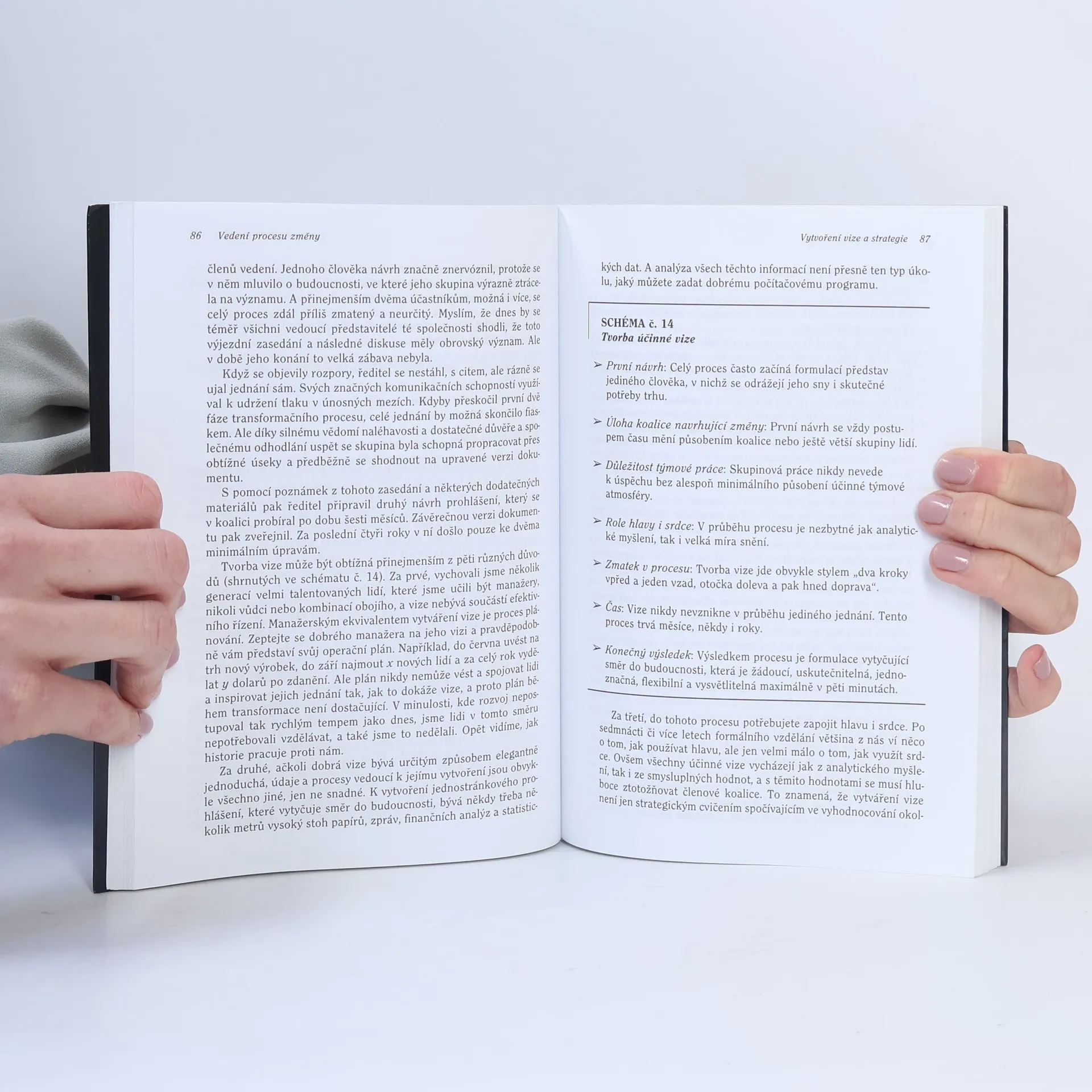 Kniha Johna Kottera se zaměřuje na strategické chování firem v rychle se měnícím ekonomickém prostředí. Autor, uznávaný odborník na vedení lidí a transformační projekty, tvrdí, že vnitřní změna firmy, jako je zavádění programů zvyšování kvality nebo změna firemní kultury, nebude úspěšná, pokud manažeři nezmění své metody a nebudou se orientovat na „měkké“ přístupy k vedení. Kotter zdůrazňuje, že lepších výsledků dosáhneme, když změny nebudeme řídit, ale vést, a ukazuje, že manažerský přístup často vede k neúspěchům. Analyzuje příklady více než sta firem a identifikuje běžné chyby manažerů během procesu změny. Navrhuje osmibodový proces úspěšné transformace, který zahrnuje vyvolání pocitu naléhavosti, formulaci společné vize a získání podpory zaměstnanců. Dále se zaměřuje na překonávání obav lidí a zakotvení výsledků do podnikové kultury pro dlouhodobý efekt. Kotter tak poskytuje praktického průvodce pro vedoucí pracovníky odpovědné za klíčové změny, které vyžadují transformaci organizační kultury a chování. Jeho další kniha Srdce změny rozšiřuje původní koncepci a ukazuje, že změna chování lidí závisí na emocích a zkušenostech, nikoli pouze na racionálních argumentech.