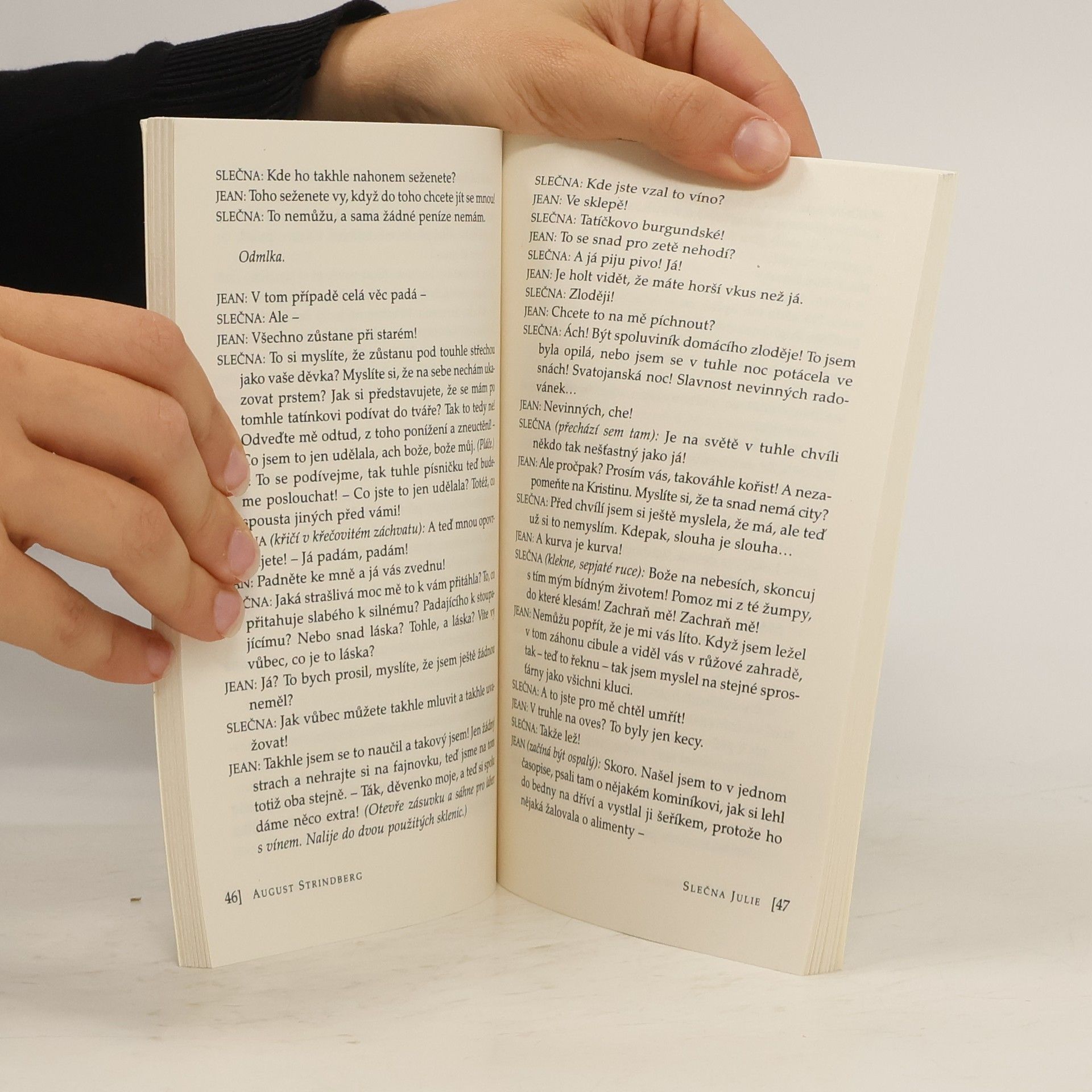 Naturalistické drama z roku 1888 bývá označováno jako manifest skandinávského naturalismu. Příběh trojice mladých lidí rozdělených společenským postavením se odehrává za magické svatojanské noci, kdy se dostávají na povrch skryté touhy a vášně, od začátku spěje k neodvratné tragédii. Vychází v moderním překladu Fr. Fröhlicha jako 82. svazek edice D.