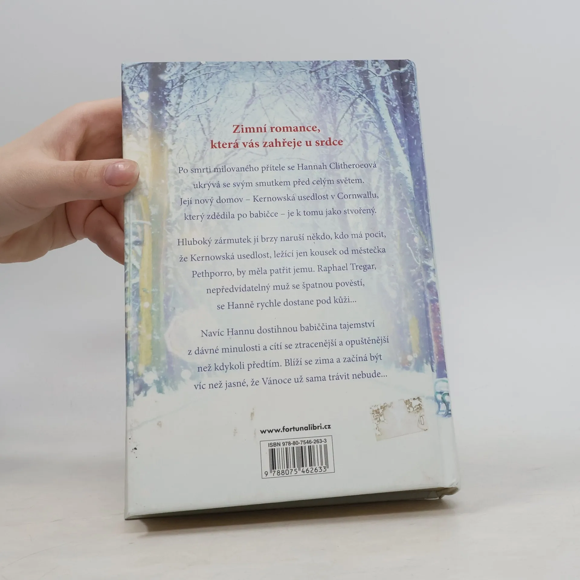 Zimní romance, která vás zahřeje u srdce Po smrti milovaného přítele se Hannah Clitheroeová ukrývá se svým smutkem před celým světem. Její nový domov – Kernowská usedlost v Cornwallu, který zdědila po babičce – je k tomu jako stvořený. Hluboký zármutek ji brzy naruší někdo, kdo má pocit, že Kernowská usedlost, ležící jen kousek od městečka Pethporro, by měla patřit jemu. Raphael Tregar, nepředvídatelný muž se špatnou pověstí, se Hanně rychle dostane pod kůži. Nejvíc Hannu dostihnou babiččina tajemství z dávné minulosti a cítí se ztracenější a opuštěnější než kdykoliv předtím. Blíží se zima a začíná být víc než jasné, že Vánoce už sama trávit nebude…
