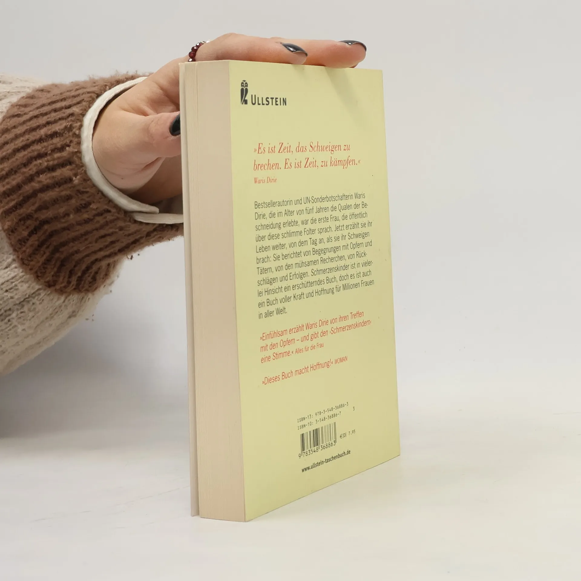 Bestsellerautorin und UN-Sonderbotschafterin Waris Dirie, die im Alter von fünf Jahren die Qualen der Beschneidung erlebte, war die erste Frau, die öffentlich über diese schlimme Folter sprach. Jetzt erzählt sie ihr Leben weiter, von dem Tag an, als sie ihr Schweigen brach: Sie berichtet von Begegnungen mit Opfern und Tätern, von den mühsamen Recherchen, von Rückschlägen und Erfolgen. Schmerzenskinder ist in vielerlei Hinsicht ein erschütterndes Buch, doch es ist auch ein Buch voller Kraft und Hoffnung für Millionen Frauen in aller Welt. Gemeinsam mit TERRE DES FEMMES setzt sich Waris Dirie gegen die weibliche Genitalverstümmelung ein. Weitere Informationen zu diesem Thema finden Sie unter www. frauenrechte. de.