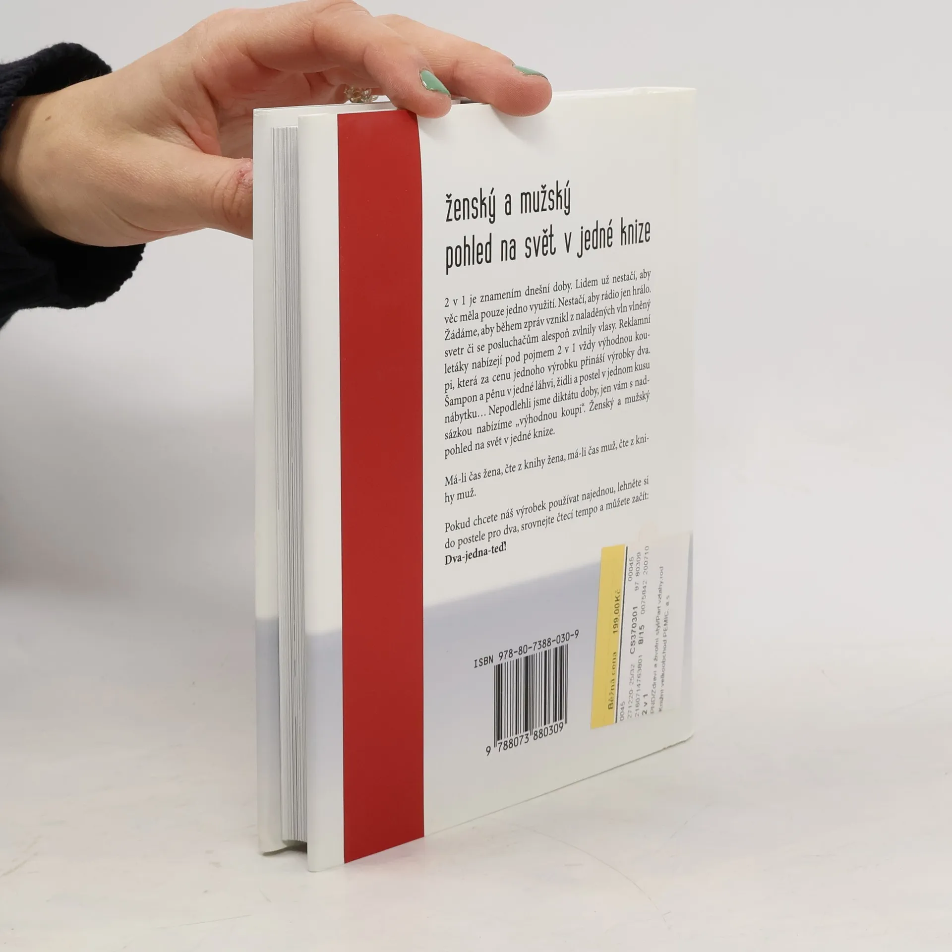 Soubor sloupků Veroniky Žilkové a Martina Stropnického. „2 v 1“ je znamením dnešní doby. Lidem už nestačí, aby věc měla jen jedno využití. Reklamy nabízejí pod pojmem 2 v 1 vždy výhodnou koupi, která za cenu jednoho výrobku přináší výrobky dva. Nepodlehli jsme diktátu doby, jen s nadsázkou nabízíme „výhodnou koupi“ – ženský a mužský pohled na svět v jedné knize.
