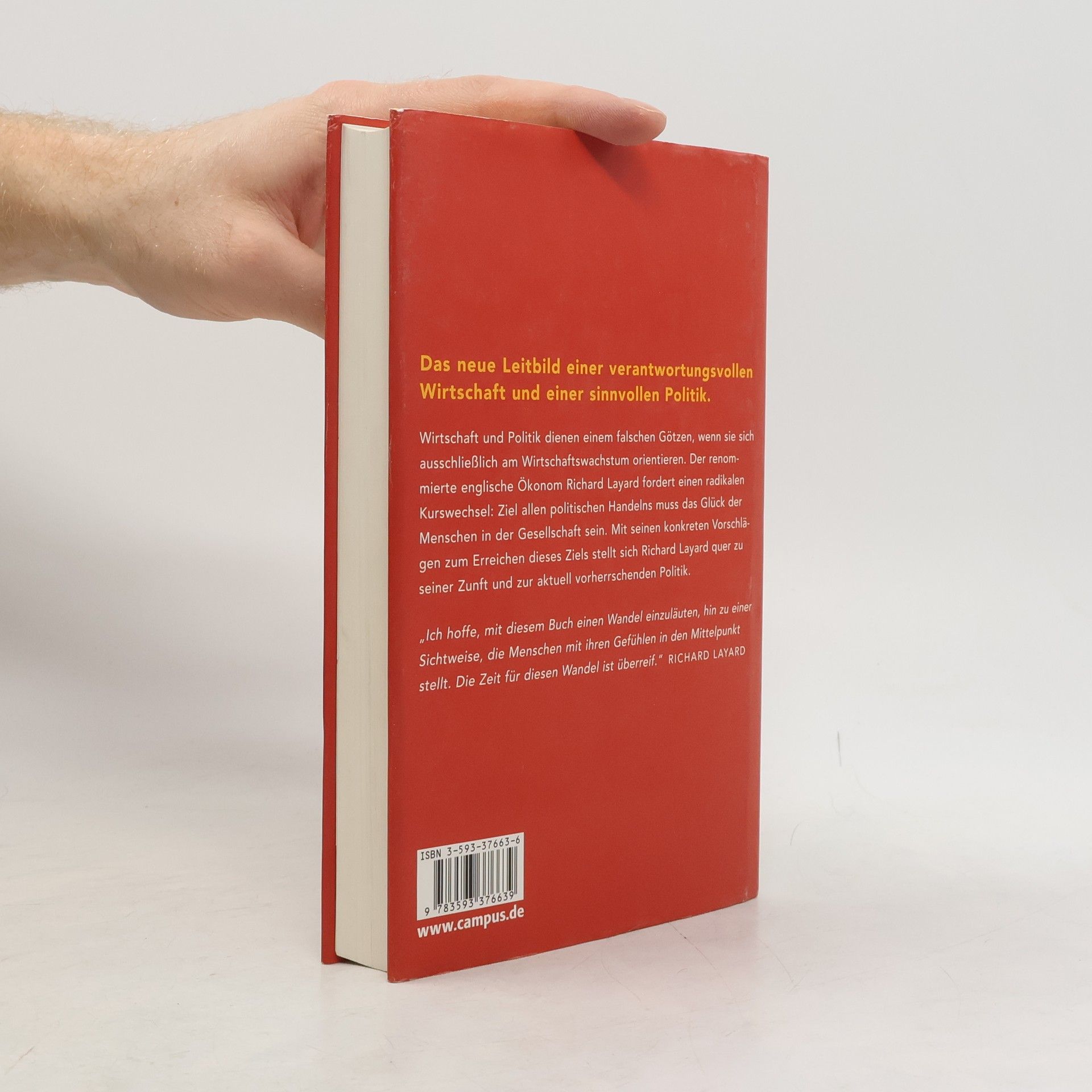 Wir sind eine Wohlstandsgesellschaft – eine glückliche Gesellschaft sind wir nicht. Stress, Angst und Unsicherheit bestimmen unser Leben auf der Jagd nach Geld und Erfolg. Schuld ist die einseitige Fixierung auf ökonomisches Wachstum, die Politik und Wirtschaft bestimmt. Mit seinem Blick auf das Glück der Menschen stellt sich Richard Layard radikal quer zu seiner Zunft und zur herrschenden Politik. Er macht konkrete und unbequeme Vorschläge für einen Politikwechsel. Auf der Grundlage umfangreicher empirischer Studien geschrieben, ist sein Buch ein Plädoyer gegen die Herrschaft der Ökonomie über unser Leben, ein dringender Appell zum Handeln und eine neue große politische Vision, deren Kern das Glück der Gesellschaft ist.