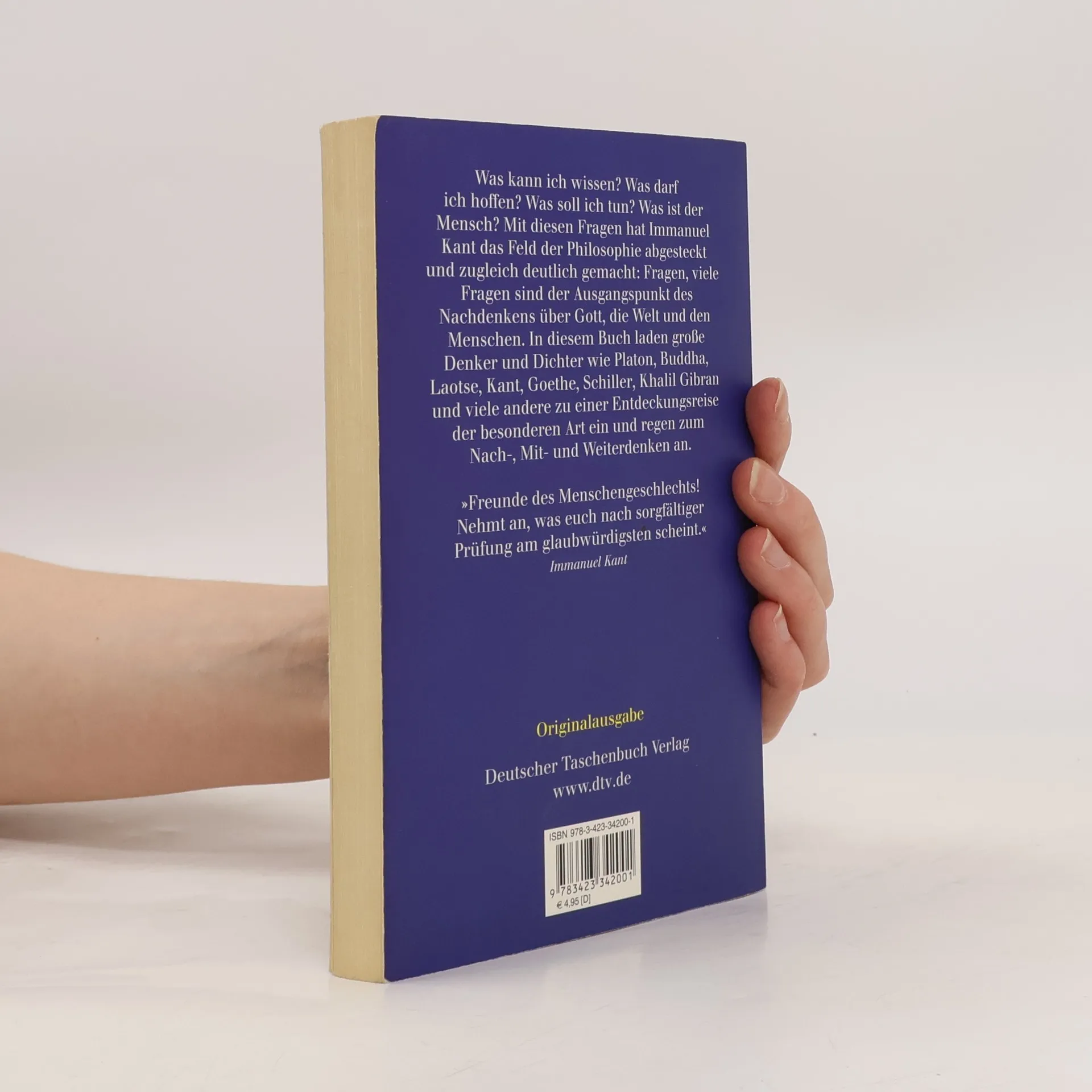 Eine Entdeckungsreise der besonderen Art. Berühmte Denker und Dichter laden zum Nach-, Mit- und Weiterdenken ein. Was würden Sie tun, wenn Sie Gott wären? Welche Auswirkungen hätte es für die Menschen, wenn Leben auf anderen Planeten entdeckt würde? Haben Freude, Leid, Krankheit, Liebe einen Sinn, und wenn ja, welchen? Wie würde sich das Dasein verändern, gäbe es keine Sprache, Kunst, Gefühle? Ist es wichtig, das Wohl des Ganzen, der anderen im Blick zu haben? Fragen, viele Fragen sind der Ausgangspunkt des Philosophierens. Berühmte Denker, Naturwissenschaftler und Dichter wie Platon, Buddha, Lao Tse, Kant, Leibniz, Goethe, Schiller, Christian Morgenstern und viele andere laden ein zu einer Entdeckungsreise der besonderen Art.