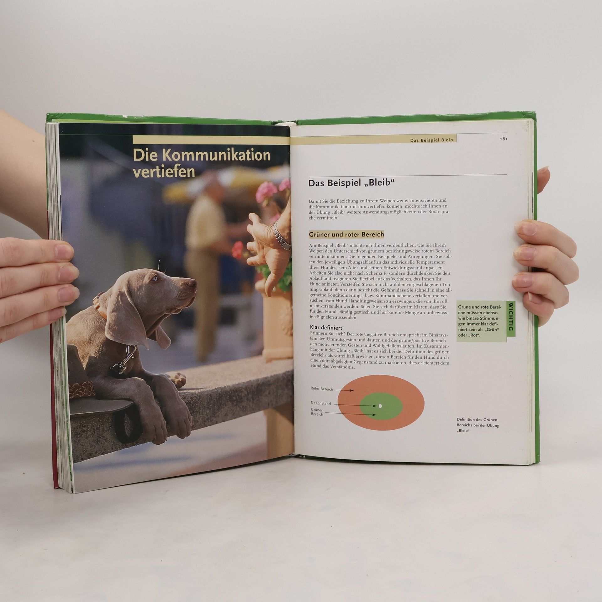 Ein Welpe braucht von Anfang an Zuwendung, Vertrauen und eine klare Orientierung in der für ihn fremden Menschenwelt. Hier setzt Anton Fichtlmeiers Welpen-schule an: „Ja“ oder „Nein“, „Richtig“ oder „Falsch“ sind eindeutige Signale für jeden Welpen. Mit Hilfe dieses binären Systems können Sie von Anfang an mit Ihrem kleinen Hund in einen engen kommunikativen Kontakt treten - und er wird Ihnen fast von selbst überall hin folgen. Sitz, Platz, Leinenführigkeit und sogar erstes Apportieren sind dann keine Herausforderungen mehr, sondern Selbstverständlichkeiten, die freudig ausgeführt werden. Richtiger Umgang mit dem Hundewelpen. Wahrnehmung und Kommunikation. Sozialisierung und Umweltprägung. Klare Signale und Orientierung. Freudiges Herankommen und Folgschaft bei Fuß. Der Umgang mit der Leine. Apportieren. Außerdem: Tipps und Hilfe für den erwachsenen Hund.