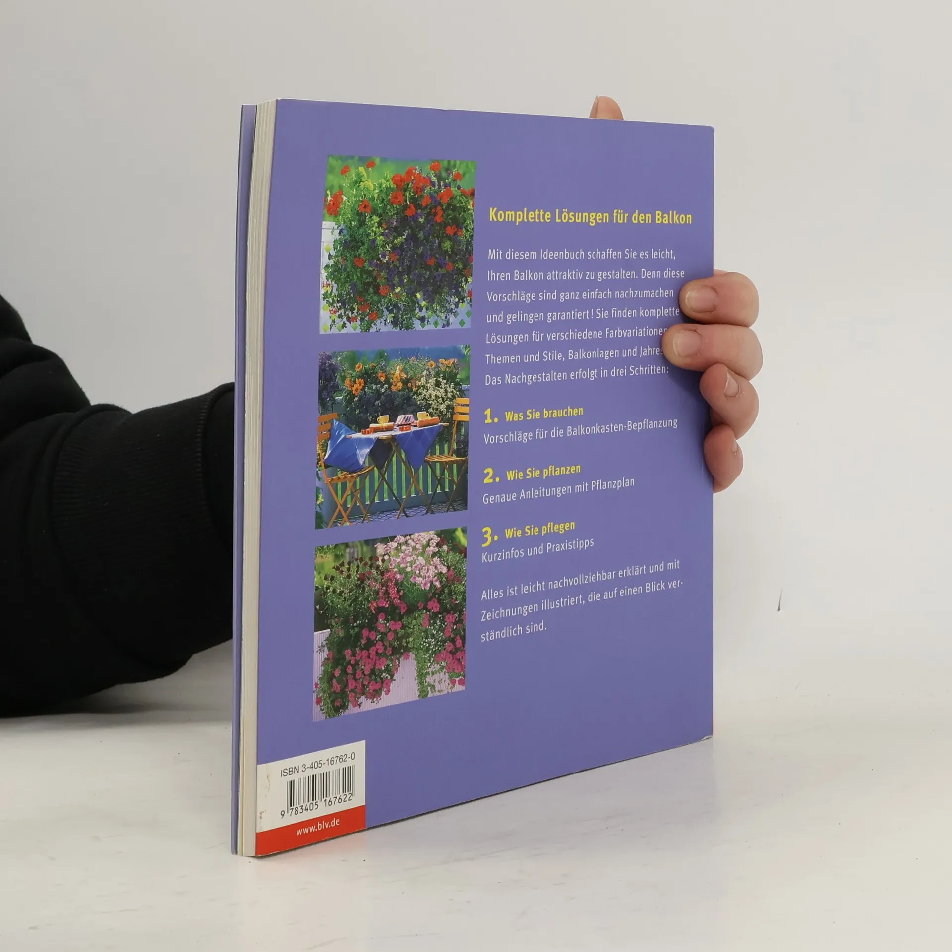 In drei Schritten nachgestalten – das genial einfache System: Komplett-Lösungen für den Balkon für verschiedene Stile und Jahreszeiten; Pflanzenauswahl, Gestaltungen, Pflege.
