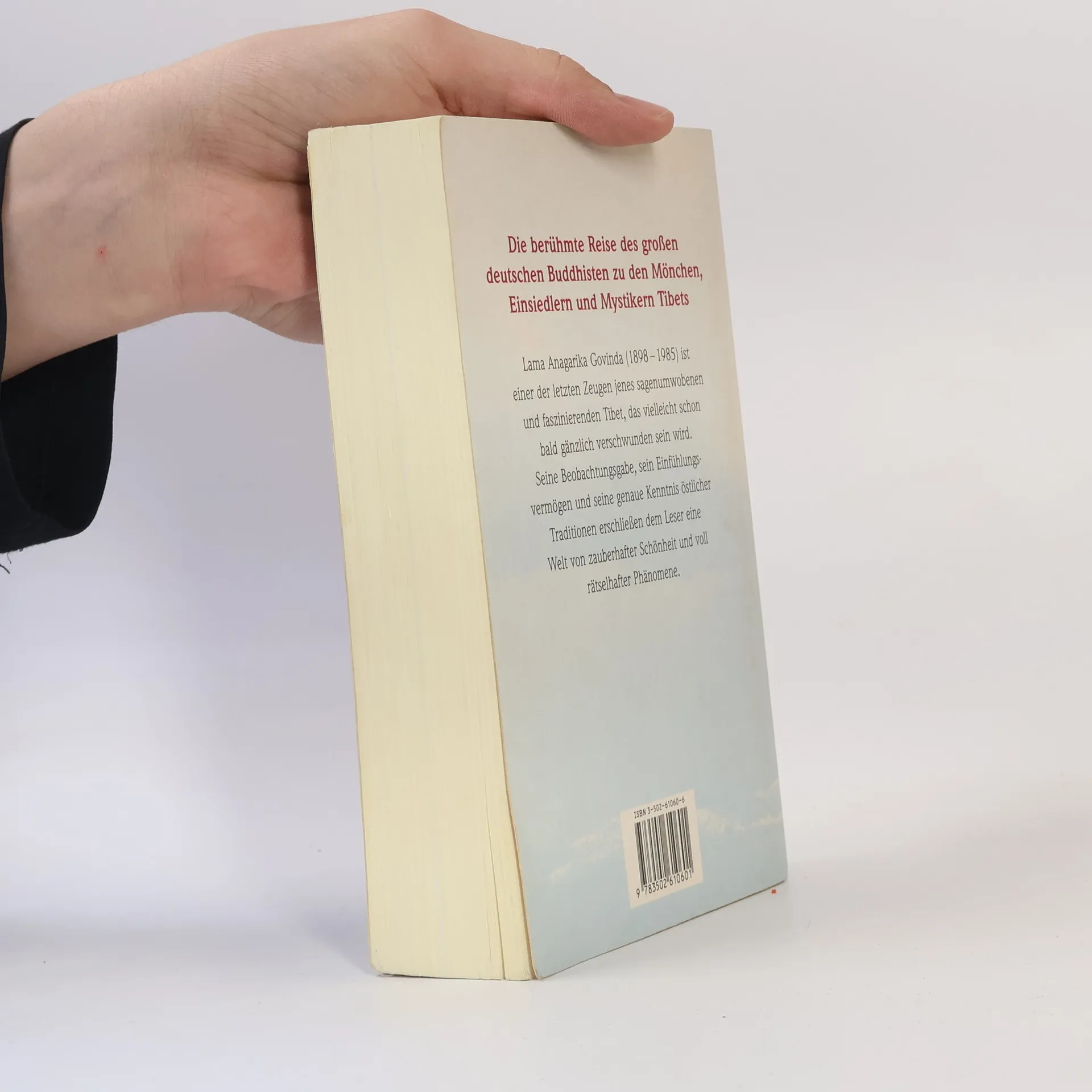Begleitet von einem der heiligen Männer des Landes reiste Lama Anagarika Govinda jahrelang durch eine weithin unerforschte, nur unter Gefahren zugängliche Welt. „Grundlagen tibetischer Mystik“ „Mandala und Lotos“
